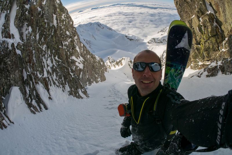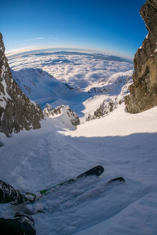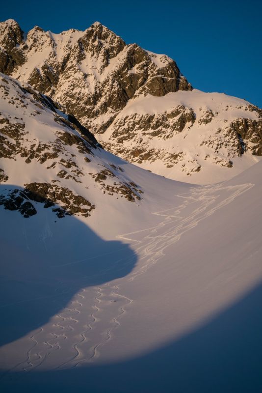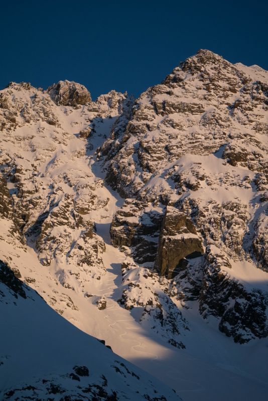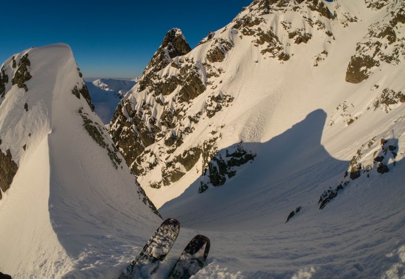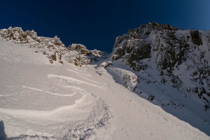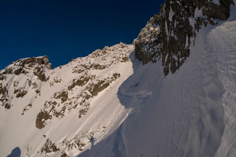 C'est le couloir à droite de D22.1. On ne le voit intégralement de nulle part durant l'approche. Du coup, on découvre à chaque tournant que... ça passe. Me suis aperçu en rentrant qu'il avait déjà été skié de rares fois. A mon avis, un des plus beaux beaux couloirs que j'ai pu faire en Belledonne en raison de son ampleur (450 m, pas ridicule pour le massif) et de son côté tournant avec des orientations allant de plein ouest à plein nord. 5.2/E2 (bon poids pour l'expo)