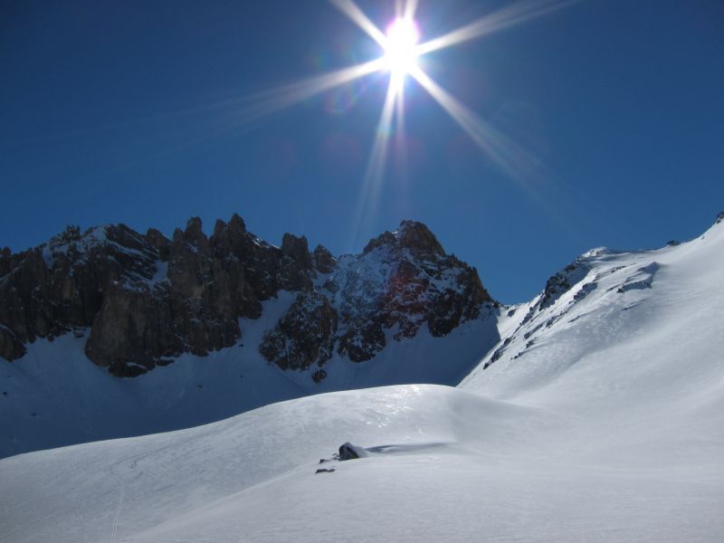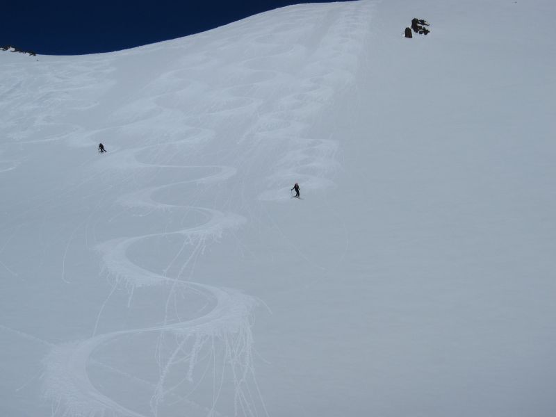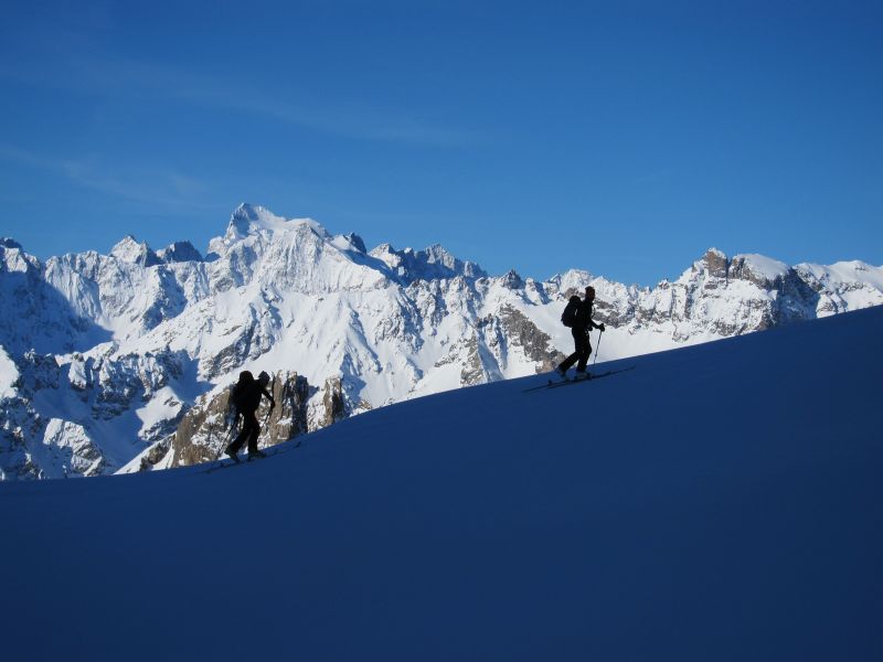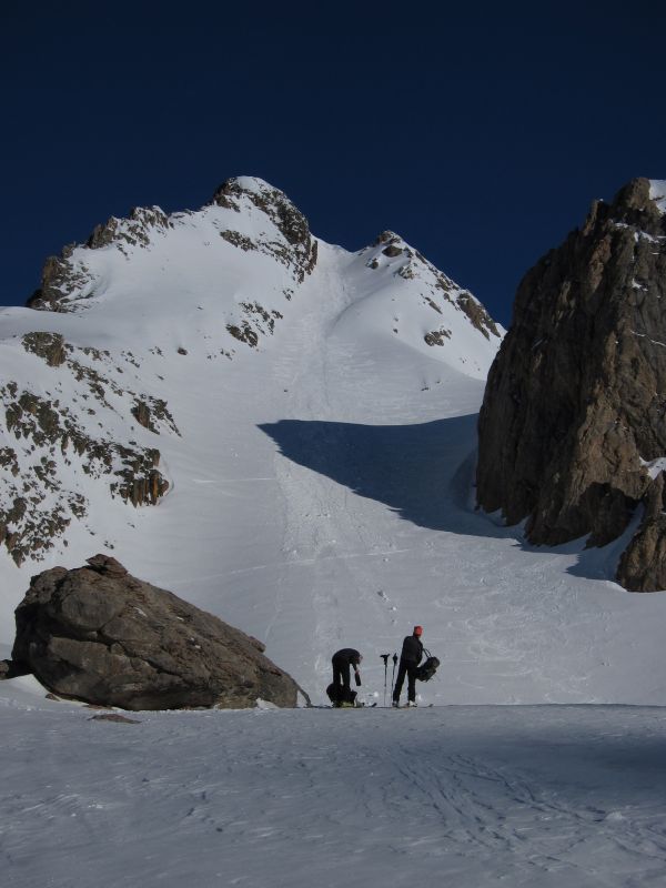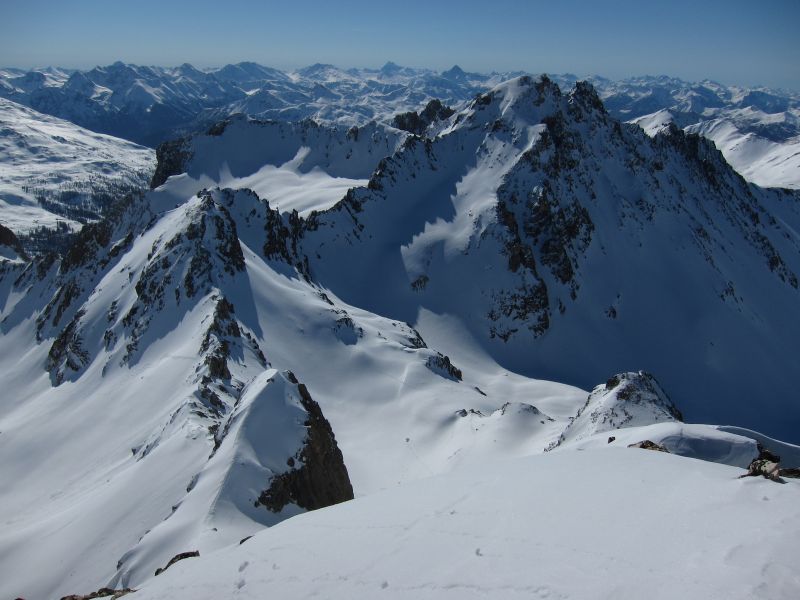 Sommet un peu loin, avec des traversées qui finalement au retour seront fort ludiques sur moquette à poil court.Très beau sommet avec de couloirs superbes. Se priver du sommet et de son panorama 360°, serait encore un échec!
