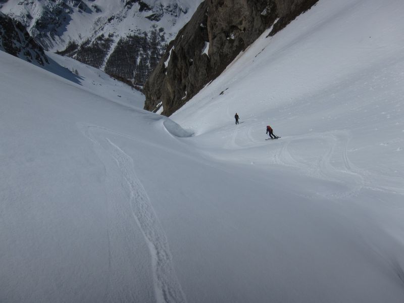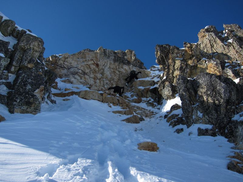 Nous savions qu'il y avait des locaux motivés,nous en avons rencontré un qui nous a rattrapé au pied du couloir. Djean à qui on donne bien le bonjour, et au plaisir de se trouver, sur ces belles montagnes.