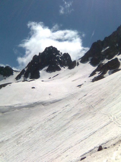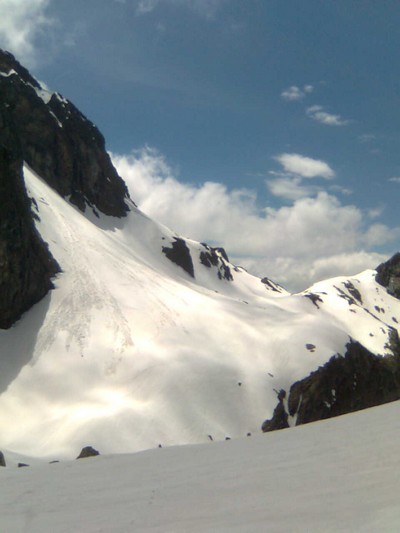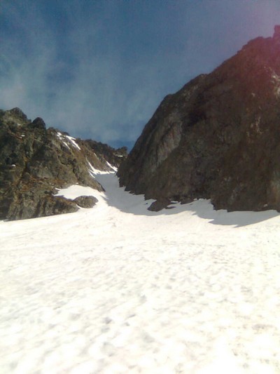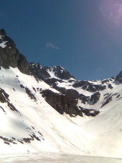 Portage jusque sous le lac de Crop , montée au col de la Mine de Fer, descente dans sous la combe Sud-Ouest du Pic de la Pierre. Montée au sommet et descente du couloir Nord (bien remplie!).Montée à Roche Fendue , descente sous la Brèche Nord du Ferrouillet. Montée à la breche , petite désescalade pour prendre pied dans le couloir Nord. Retour au lac de Crop.