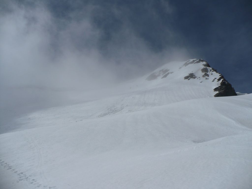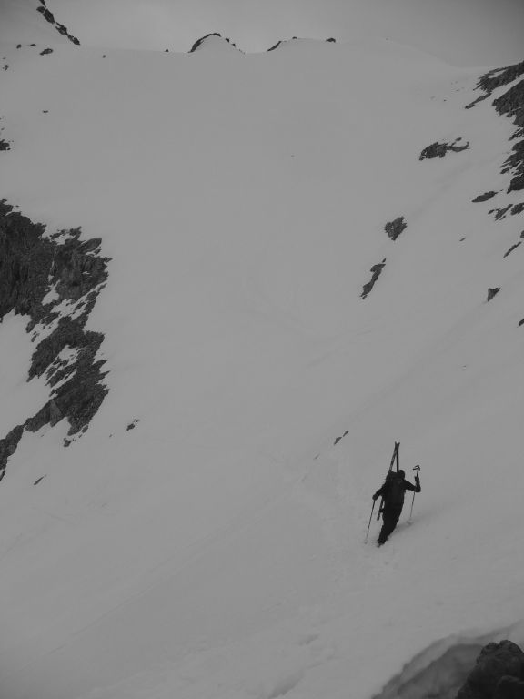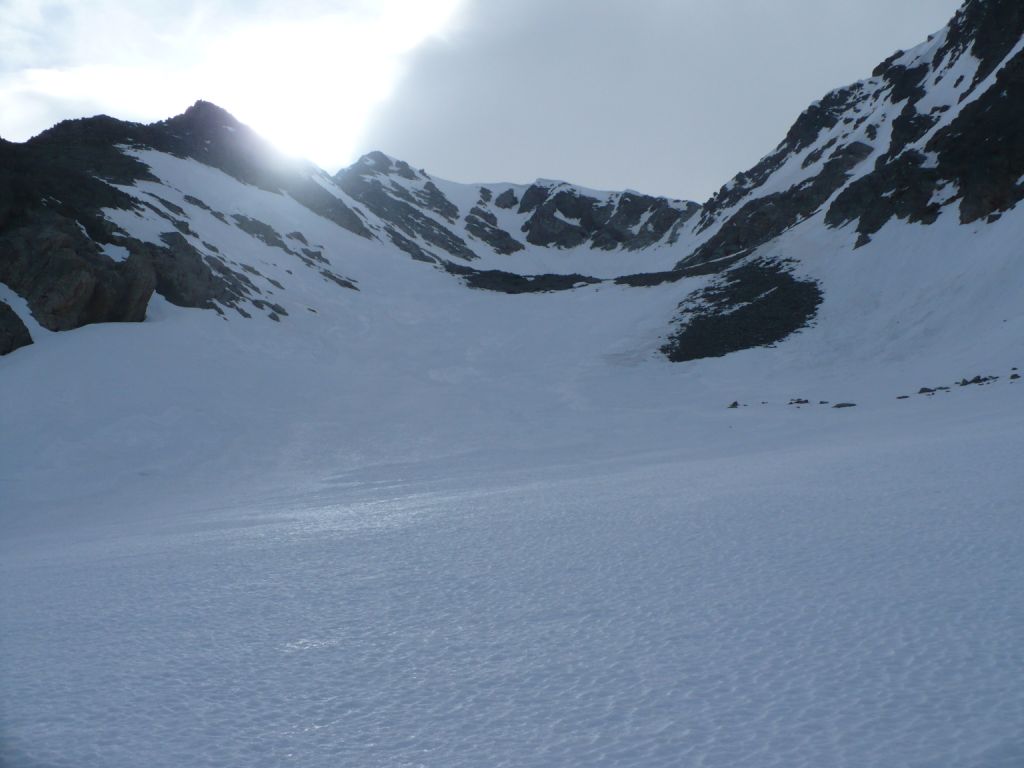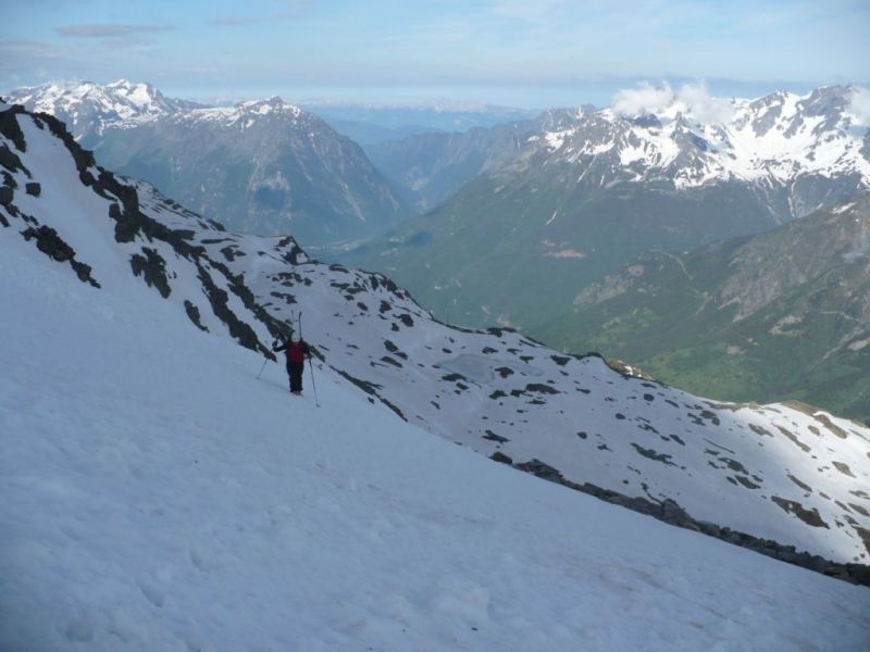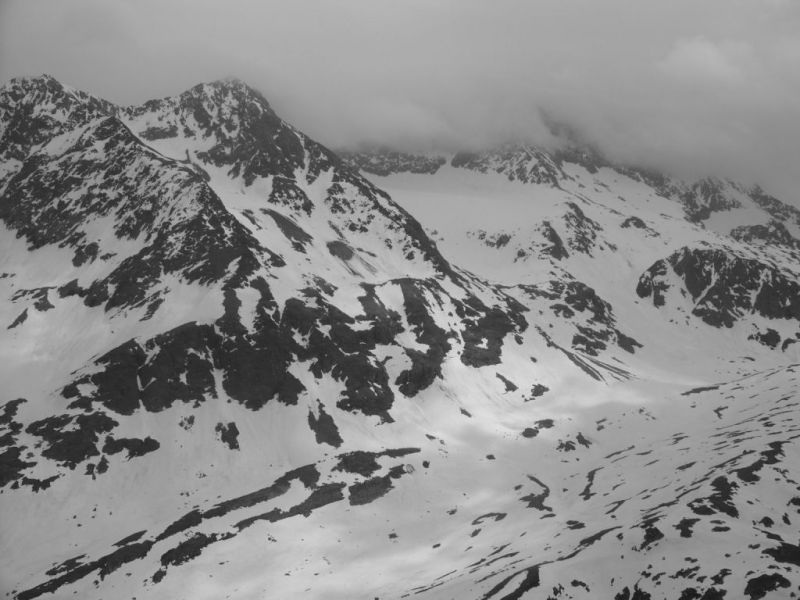 Jolie bambée (D+ : 2900 m), sauvage, qui permet d'atteindre ce sommet classique. Peu de portage (20 mn). Vu au loin, en montant aux Aiguillettes, une personne partie probablement de la route du Sabot (altitude départ ??) et montée dans la combe de la Cime de la Cochette. Le passage de la brèche de la Cochette se fait très bien en A/R sans utiliser le rappel. Les nuages, bien présents au départ, ont continué à " tourner " au-dessus de notre tête toute la journée, invitant de temps en temps le brouillard et surtout un vent violent usant dans la montée de l'Etendard.