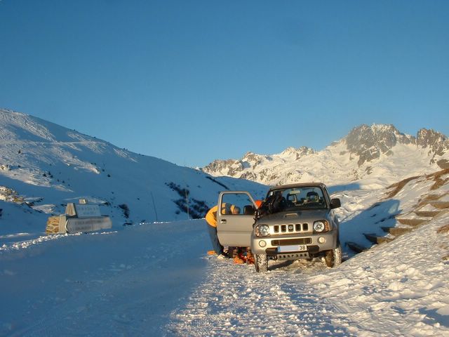 L'info du jour (avec les réserves d'usage) , ca passe (on l'a fait !) en voiture (petite) et bien chaussée, le barrage à la sortie de St Sorlin , ensuite ça monte avec un mini d'équipement sans problème. Impossible d'avoir des infos correctes la veille sur l'accès par les remontées. Parti un peu tard, on stoppera notre course vers 3150 m sous le sommet. On est à l'ombre et il fait un froid glacial. Pour ce début de saison ça ira ! C'est long et faut encore revenir.