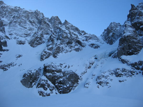 H7 mais pas de descente par la raie des fesses trop étroite et dont l'accès avec le couloir principal n'est pas assez enneigé.