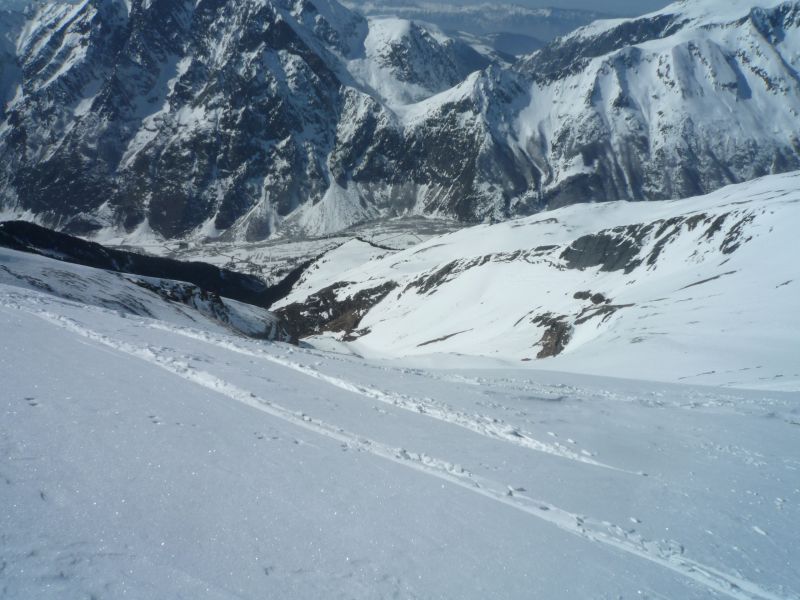 Belle descente sans temps mort ,une seule orientation jusqu'à 1624.Les jambes sont un peu lourdes dans le haut (croûtée dur)mais le bas reste excellent même à 13h00.