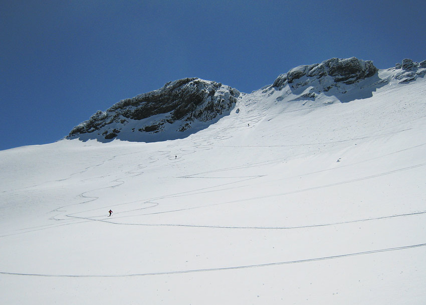 Très bon ski tout étant en nord. En gros poudre parfois un peu dense, rarement un petit carton. Sous 2200, bonne transformée avec enfoncement < 10 cm.