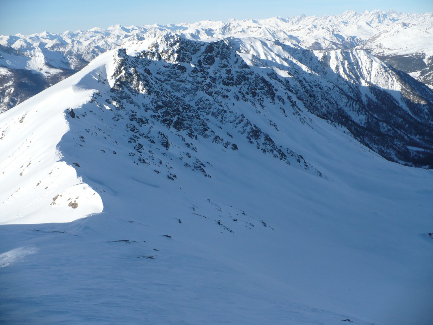 Montée par la combe de Caramagne, puis croupe S/O, et sommet ; ensuite, ligne de crête en passant par le point 2790 m et arrêt au point 2872 m.