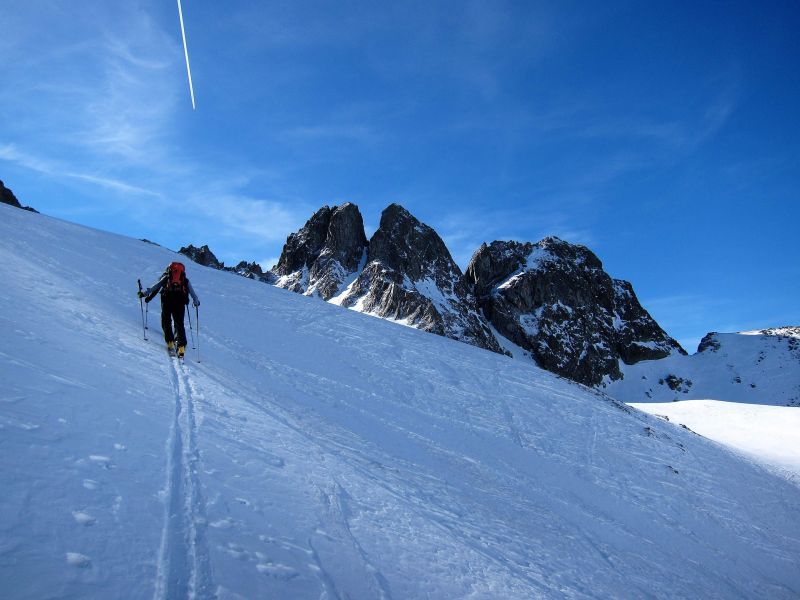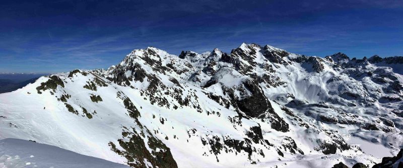 Pourquoi aller chercher loin ce qu'on a à portée de main ? Par ces temps de disette nivale le massif de Belledonne est plutôt bien enneigé, dans les combes les vallons et les versants froids. En revanche dès que l'on regarde les faces et couloirs raides et rocheux c'est vraiment très sec. Cette boucle est une valeur sûre pour optimiser l'option moquette. Montée longue et froide au Pic du Loup, descente chaude mais en altitude, petite remontée au Gd Colon pour enquiller sa magnifique descente par l'entonnoir. En gérant les horaires on arrive à skier les pentes au bon moment.