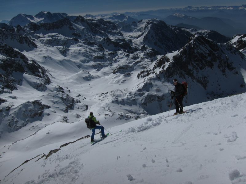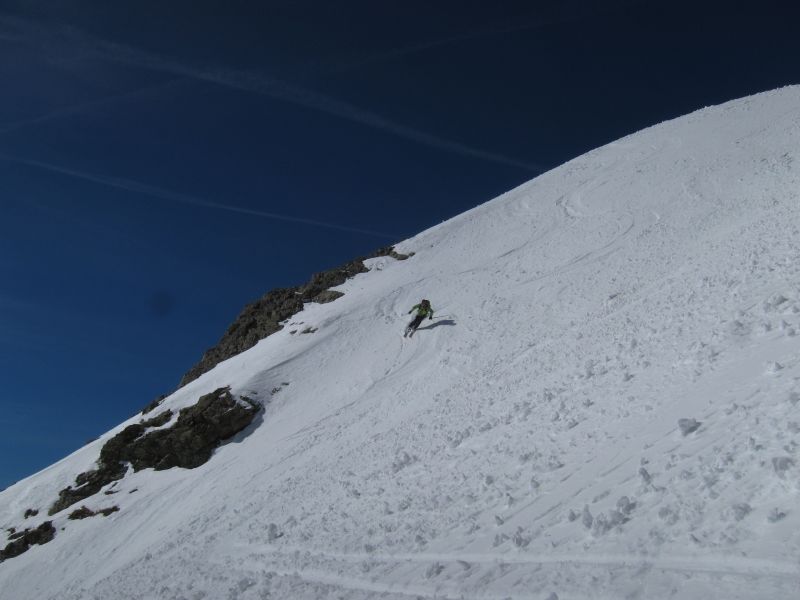 A la montée l'enneigement est quand même en pointillé jusqu'à 1650. A noter: un coup de cul bien raide (à pied obligatoire), pour accéder au glacier de la Sitre. Sommet du Pic du Loup déplumé versant sud sur 30m de dénivelé. Gd Colon impeccable, on ski jusqu'à 1280m.