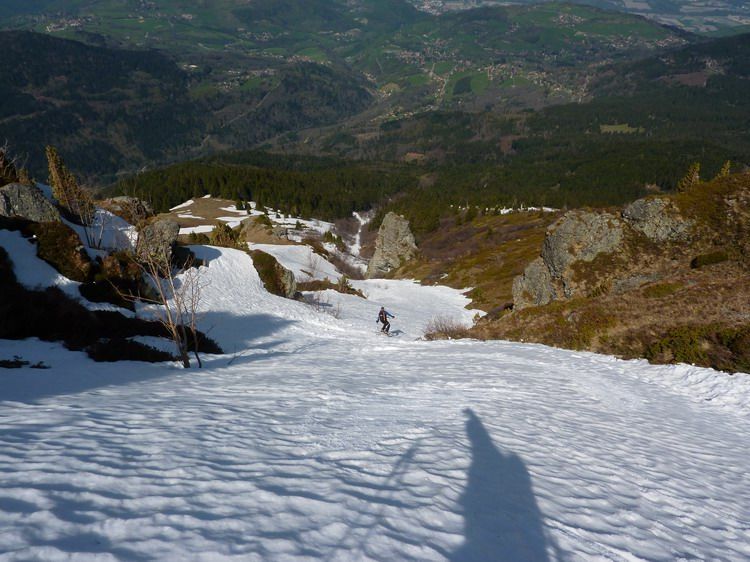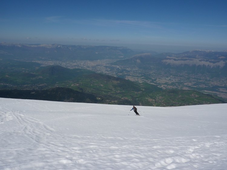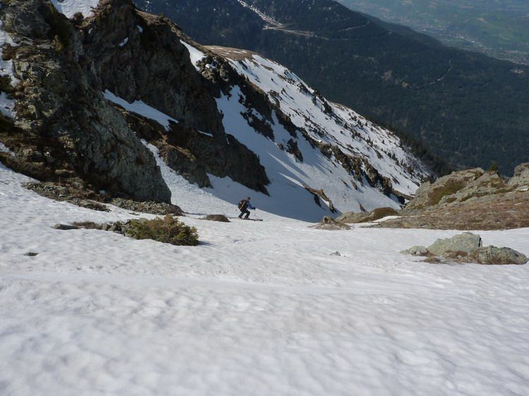 Transformée à tous les étages et dans toutes les orientations, assez bon regel malgré la chaleur annoncée. Dégel rapide au soleil. Descente OK à 9h30 en face sud du Pic du Loup, quelques rares zones encore dures en face ouest du Gd colon à 11h30.