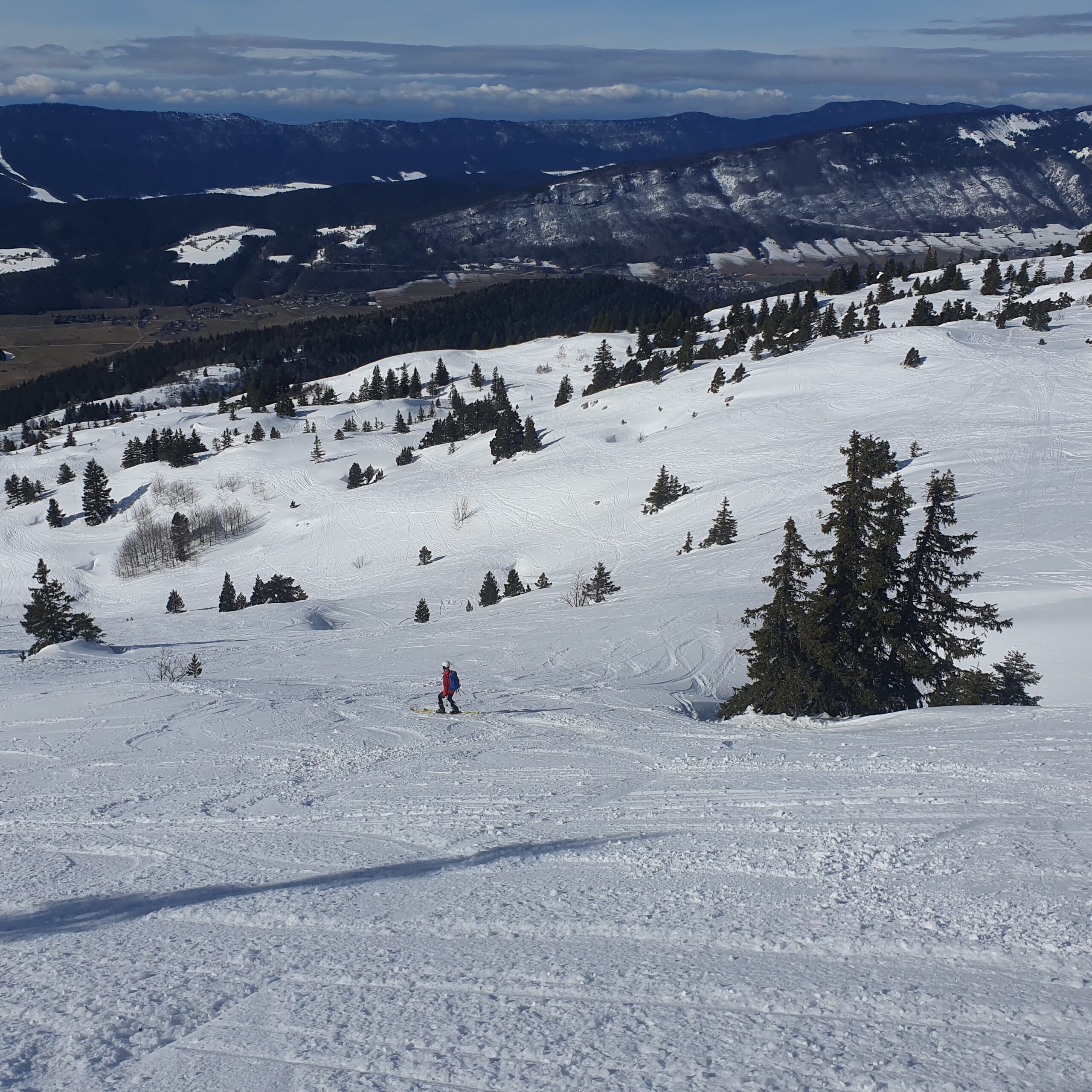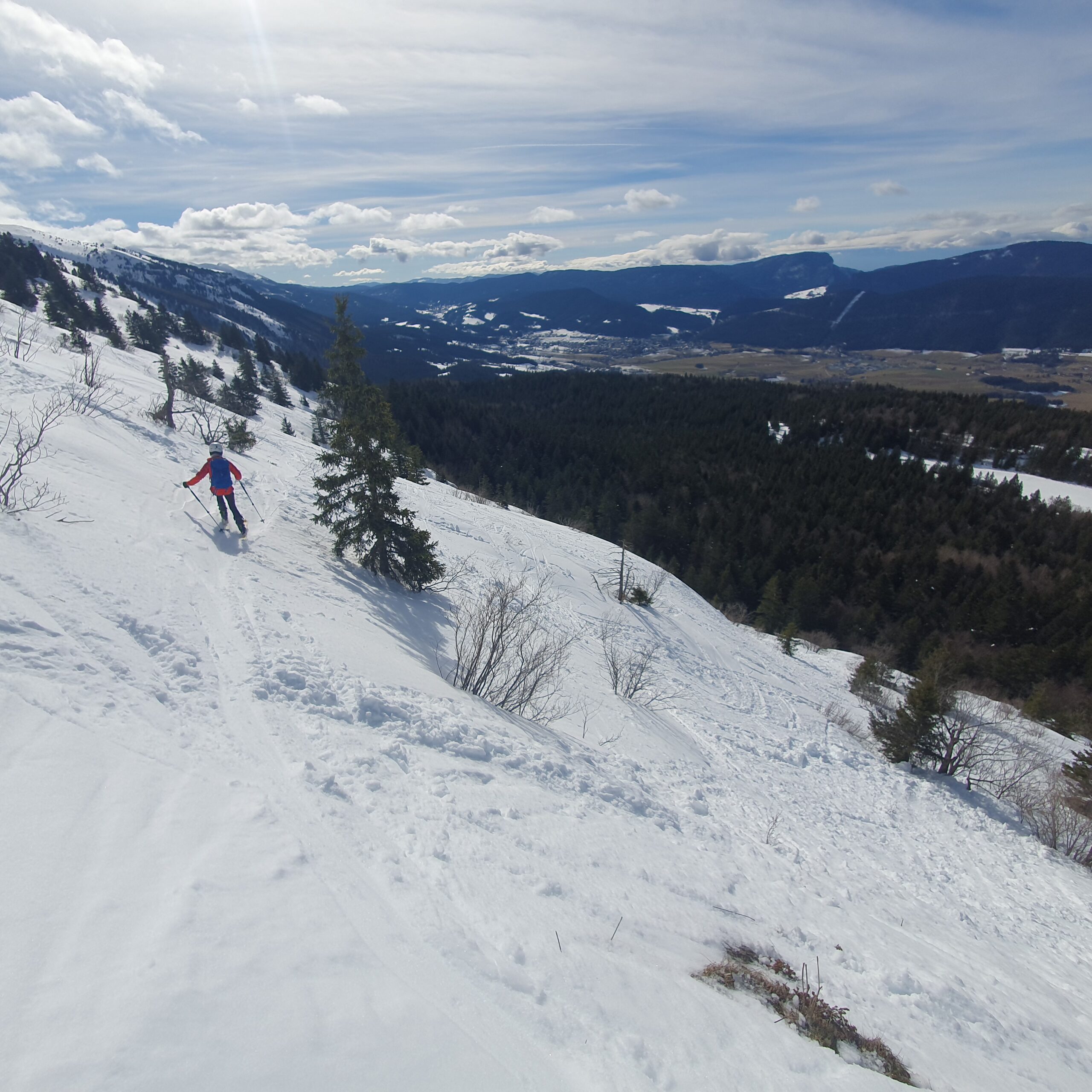 Le redoux des derniers jours a plutôt épargné le Vercors. Les arbres sont encore bien plâtrés au dessus de 1700m et la neige n'est pas si lourde, même en bas.