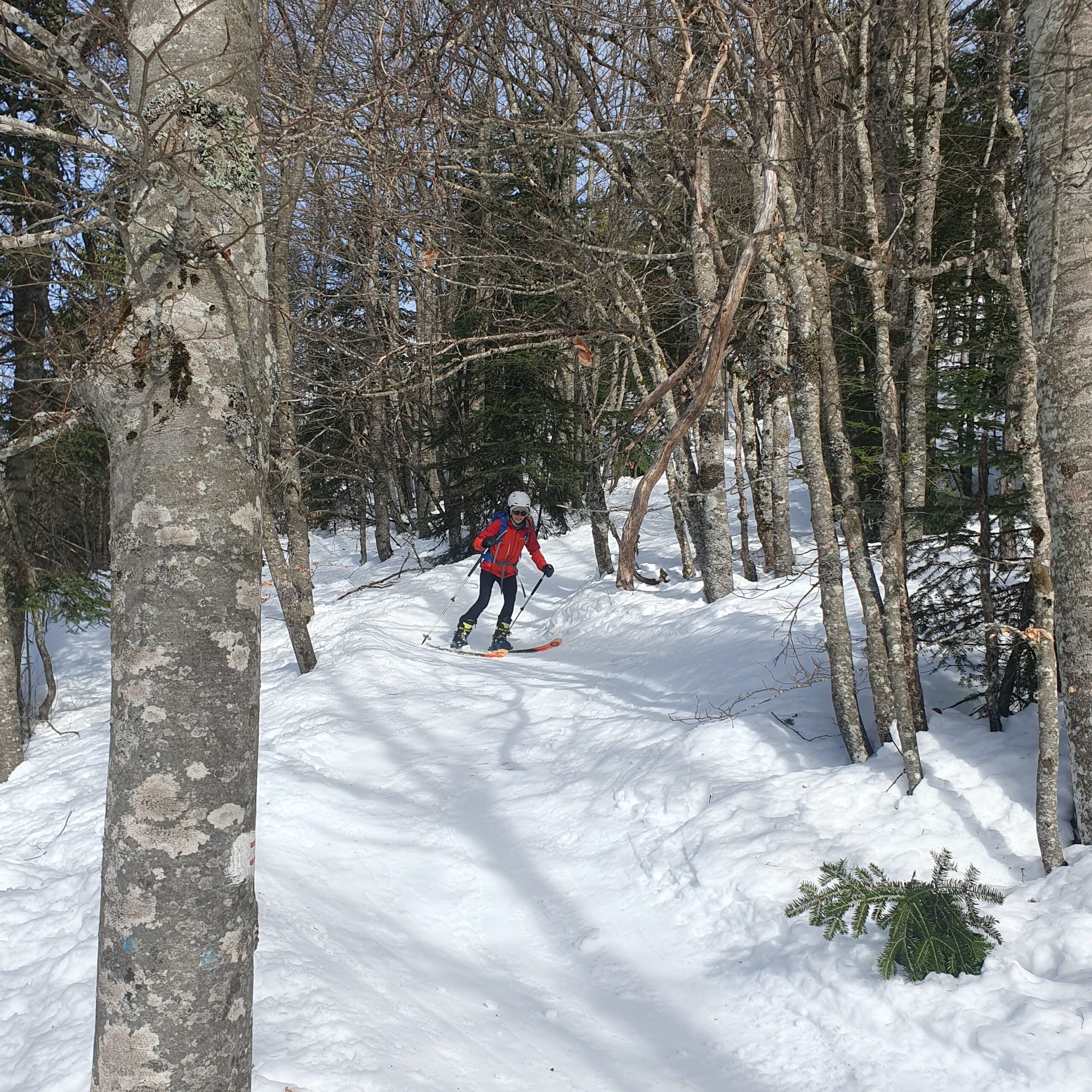 Dans la forêt vers 1400m, c'est encore bien skiable.