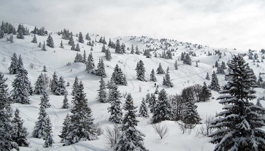 L4 avec variante ter en bas (la bis semblait ok aussi). la forêt même faiblement enneigée restait préférable au chemin.