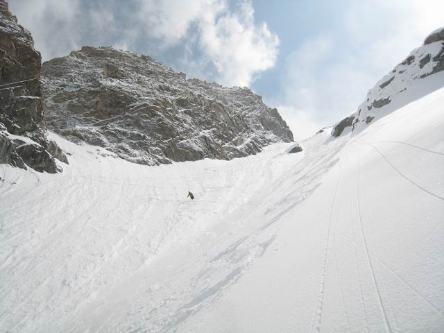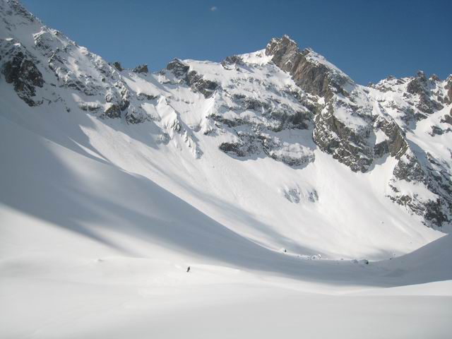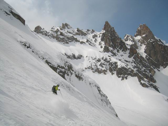 A chaque venue dans le secteur, cette belle ligne de 700m nous faisait de l'oeil, et comme on est venu assez souvent, une visite d'imposait absolument. Ainsi réalisé en boucle par le col Turbat, c'est un itinéraire pas très raide mais bien classe et alpin, qui nécssite un bon répérage car la partie basse est, comme prévu, potentiellement scabreuse et doit vraiment être bien remplie sous peine de mauvaise surprise (dalles, cascades, ressauts...)