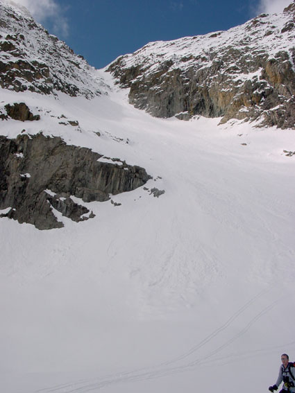 D1 avec arrêt à 2850 , avant le premier étranglement, pas skiable sur qqs mètres mais surtout à cause des dangers de purge assez continues.