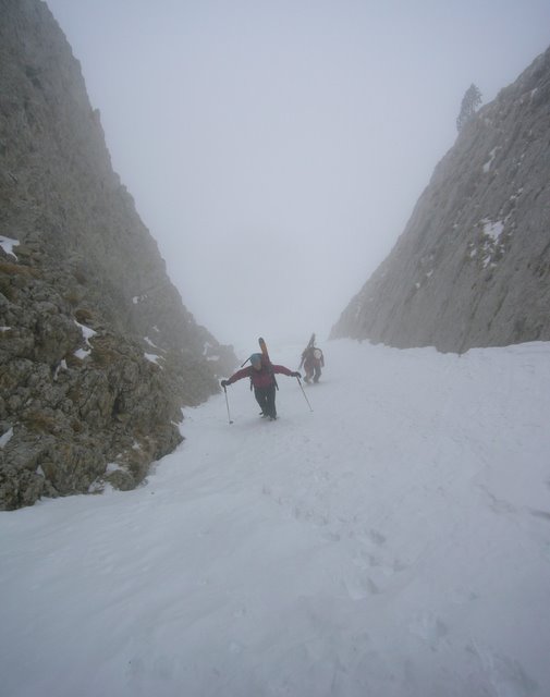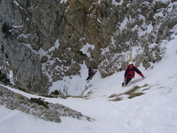 Bonne neige tassée dans les deux couloirs. Conditions pas mauvaises en ouest où on s'attendait à des conditions beaucoup plus "pêlées". Finalement c'est aussi une bonne neige froide tassée qui est servie avec, par endroit, de la neige dure.