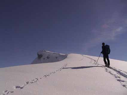 Départ fin de route déneigée, au pont, sous le hameau de Bayasse. Suivre la route du col de la Cayolle jusqu'au premier lacet, la quitter et suivre le chemin de la petite Saume. Traverser le torrent sous une barre. Reprendre dans la forêt. Venir prendre pied dans le vallon de la grande Saume. Remonter la face W jusqu'à la tête N. Descendre tout d'abord en suivant l'arête N mi-ombre, mi-soleil, une grosse corniche empêchant l'accès direct. Ensuite c'est suivant l'inspiration !!! D+/D-, 1000 m, 2.2/R/E1