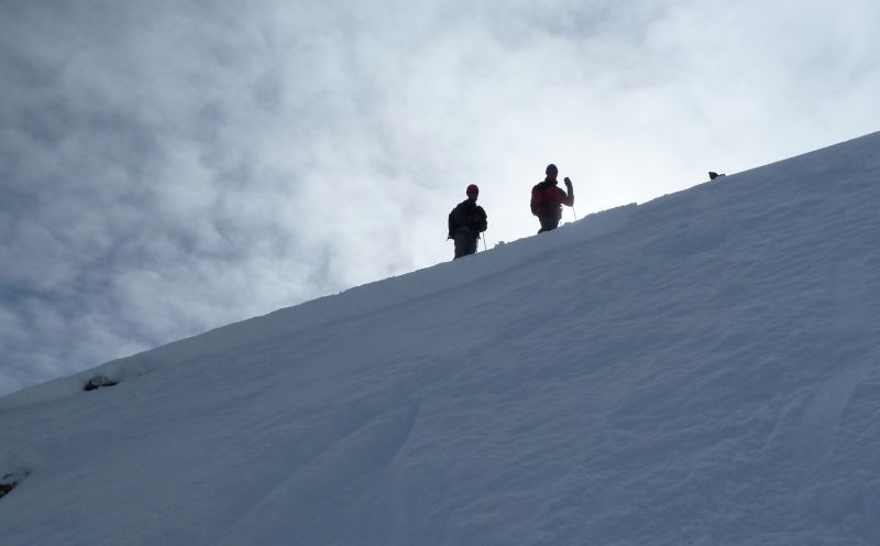 Suite au déclenchement, nous avons décidé de prendre une variante moins raide plus à droite, en restant très vigilant car les conditions n'étaient toujours pas saines. Merci aux amis pour leur attention.