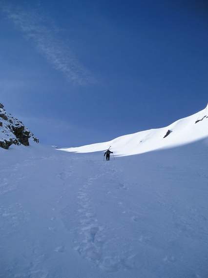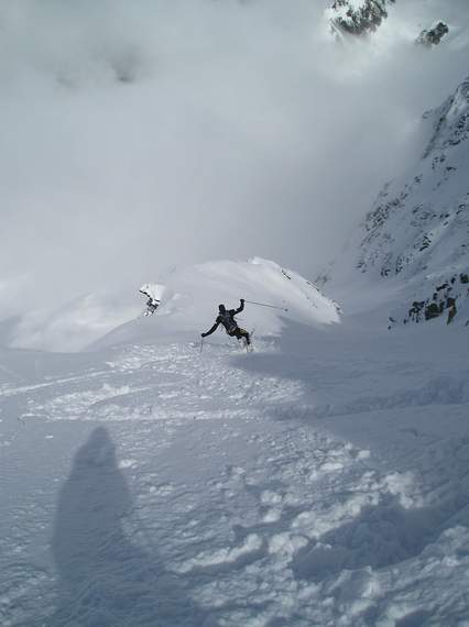 Les pluies du 27 ont purgé les couloirs et pas mal de petites avalanches sont parties. On trouve de la neige fraîche dès 2100 et l?on a mesurer 30 dans le couloir.
