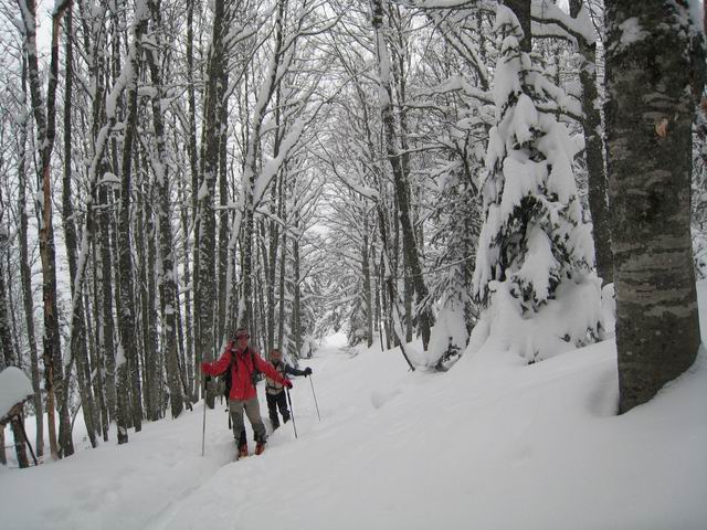 Un bon bol d'air matinal, c'est tellement agréable de se ballader dans les forets de Chartreuse en grosse neige. On a pu partir du sommet; sans sous-couche, ça racle un peu sur les 20 premiers mètres, mais avec ce matelas, c'est sans dégat