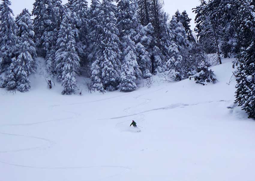Poudre de chartreuse orgiaque. Enfoncement skis 95 = 40 cm. Bonne tranchée pour remonter de Girieux, merci Jo. Autres impressions et photos [ici->http://lesbertonches.over-blog.com/2016/03/encore-de-la-grande-charteuse.html]