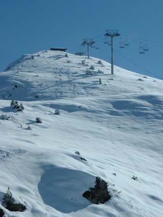 On est resté bloqué dans l'épingle Super/Prérond, y avait bien 40 cm, et pas de chasse neige.Petite boucle sympa dans la station fermée. Etonnant le changement de neige entre les versants N (couche de 60 à 70 cm de poudre légère) par rapport aux versants exposés qui se sont vite tranformés en une couche compacte et parfois cassante en surface. Dans tous les cas on a jamais touché.