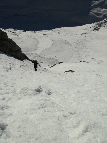 Ca chauffe encore (un vrai four dans le bas de la face entre les rochers) mais ce coup ci ce n'est pas trop la soupe (départ du sommet à 11h15).