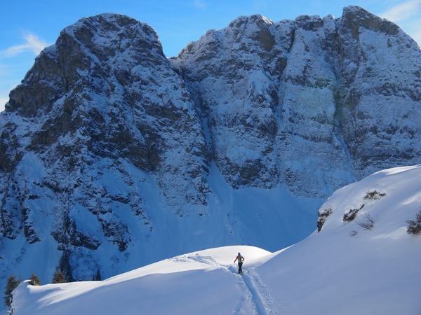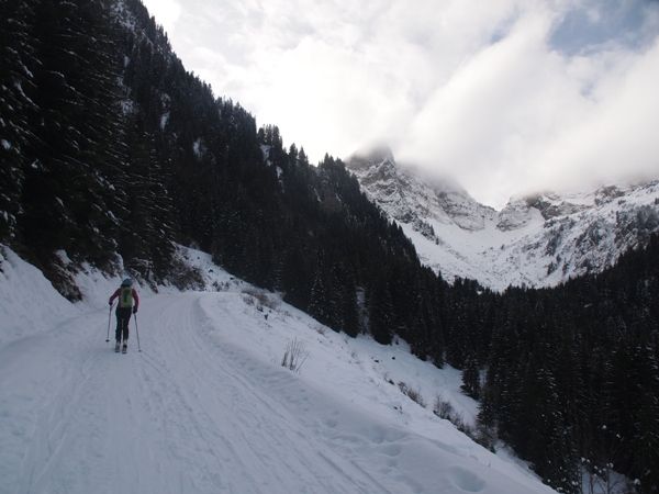 La fenêtre d'Ardens à été tracée la veille mais pas jusqu'au sommet (Brassage ?). Un gros spindrift est tombé de la face de Chavache provoquant un gros bruit et un bon nuage de poudre. Ceci n'incitait guère à poursuivre jusqu'à la fenêtre.