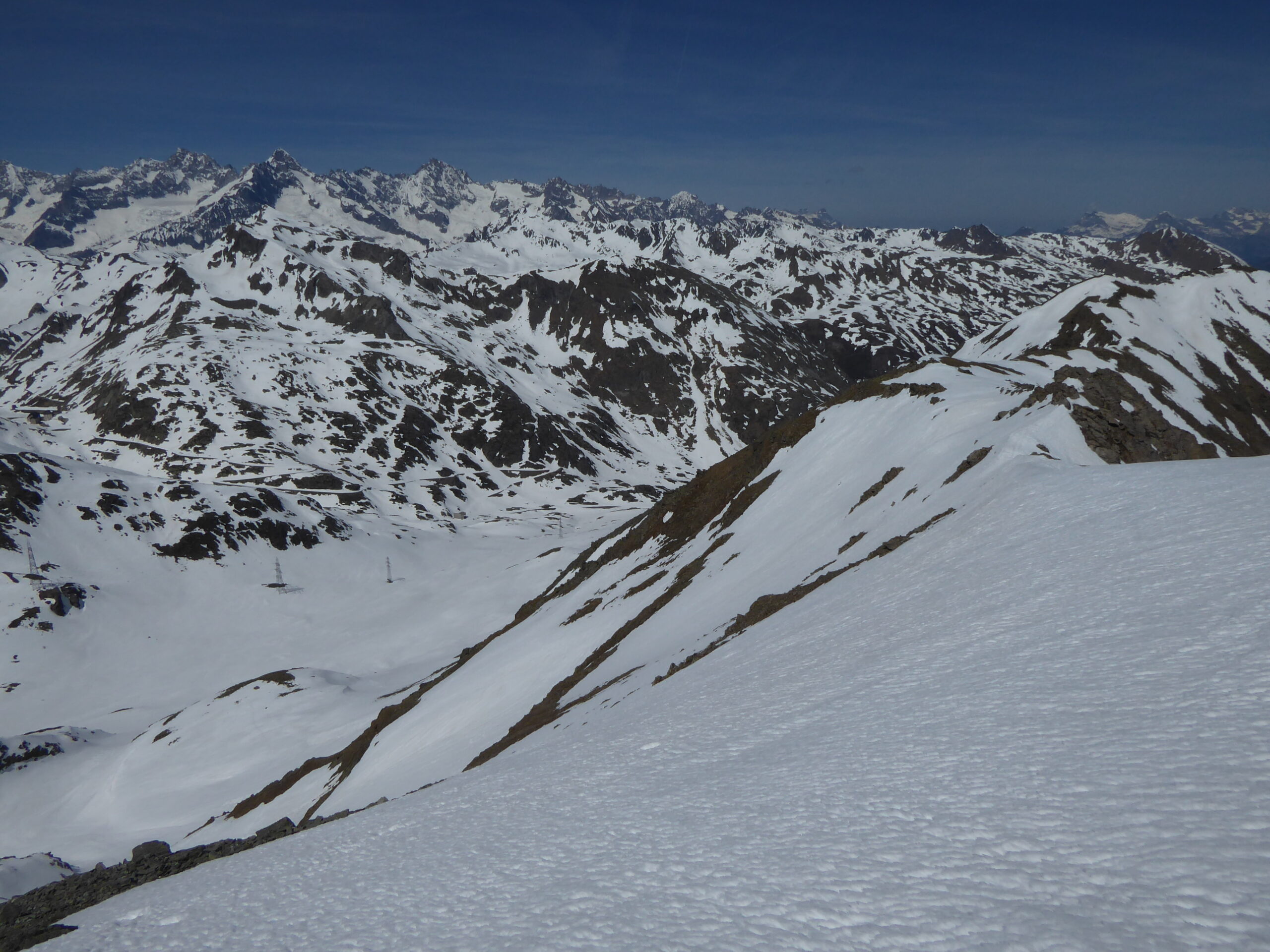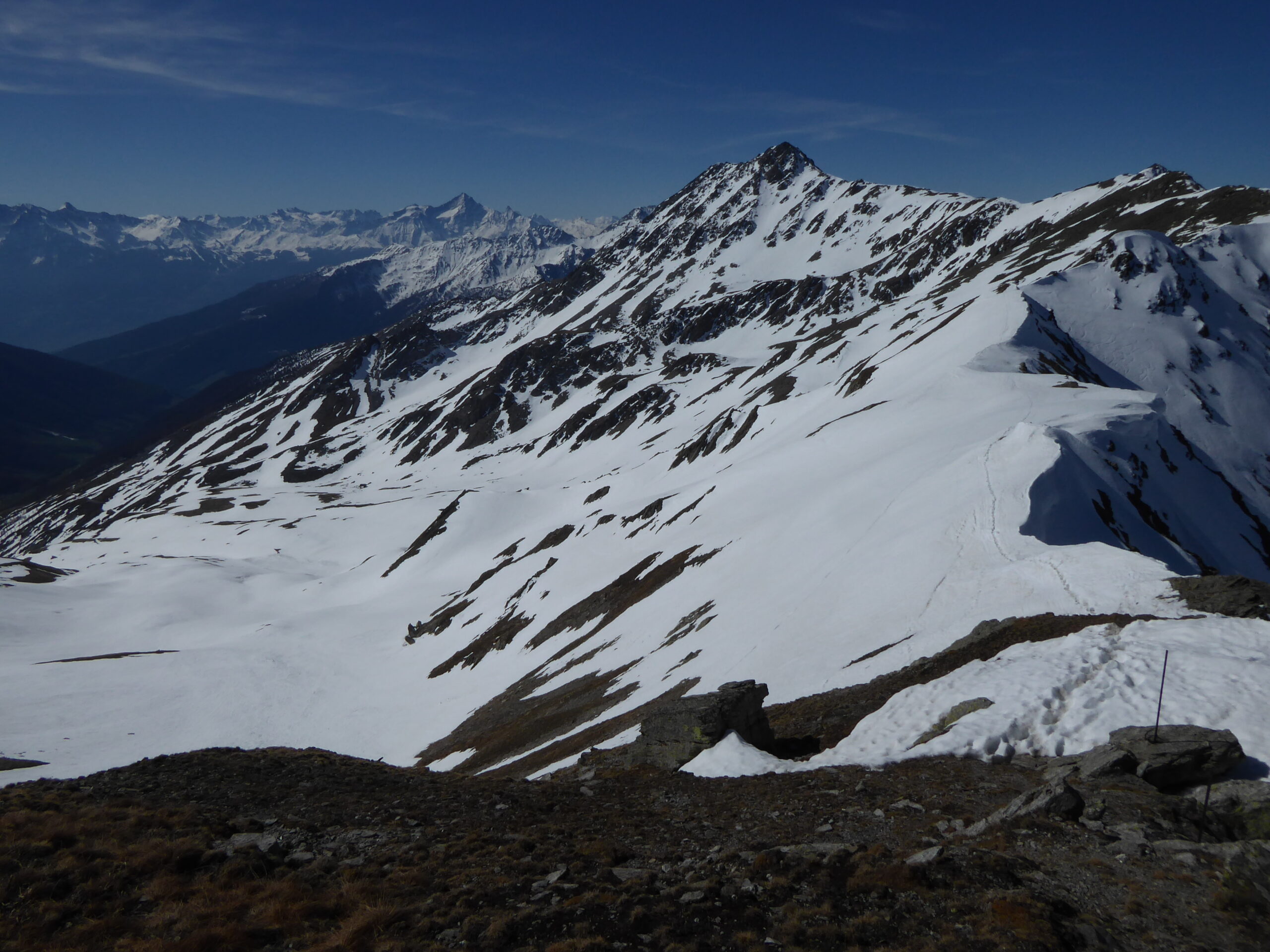 Bourg-Saint-Bernard, col N de Menouve par le vallon homonyme et traversée de la pointe à l'ouest. Descente sous le col de Menouve S sur la Tsa-Nouva jusque 2450 env. Remontée à l'arête de Tcholeire (2850), pointe de Barasson par son arête N en AR à pied. Descente de la pente O puis de la combe de Barasson et retour au point de départ par la route du GSB.