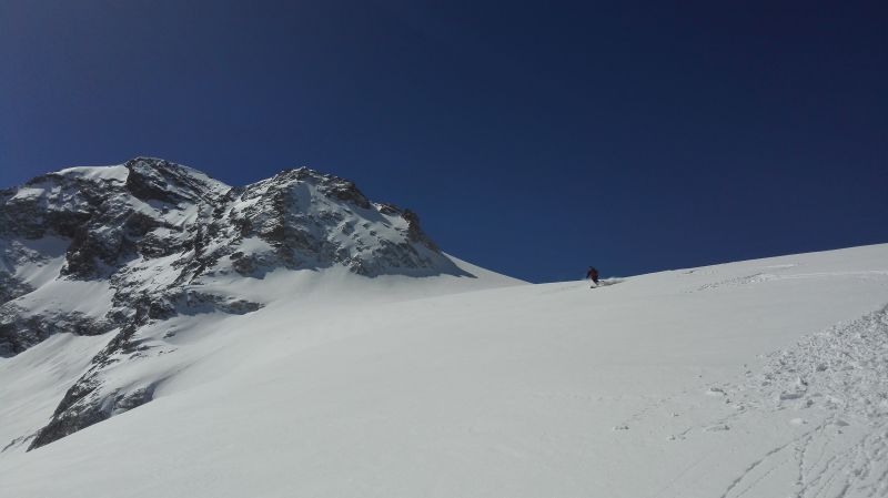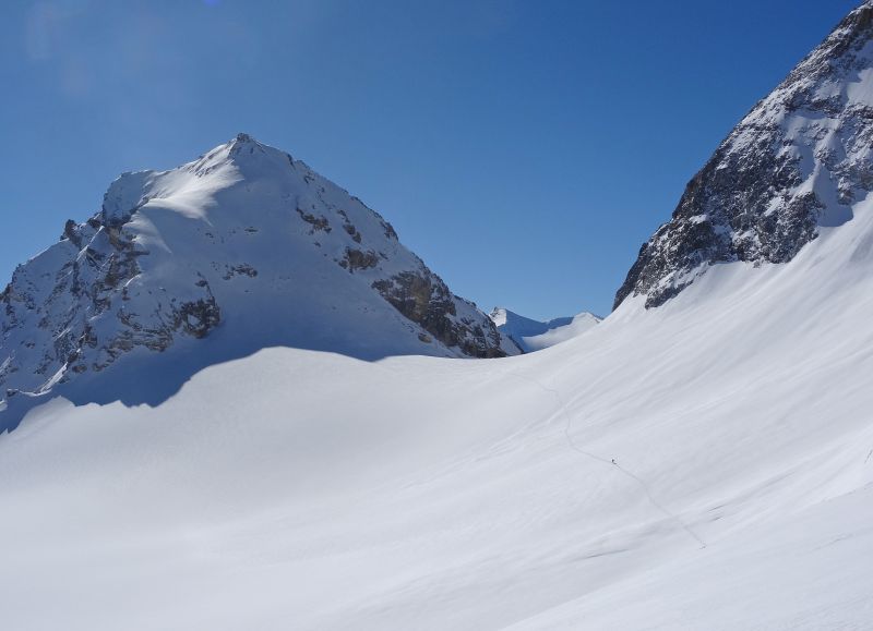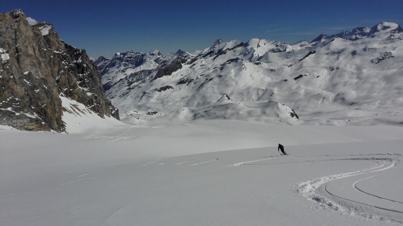 Encore une bonne bouffée d'altitude sur un glacier tout poudreux. L'enneigement est très correct dans le secteur, excellent en Haute-Maurienne, misérable partout ailleurs...