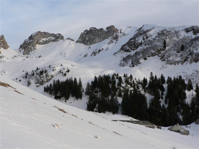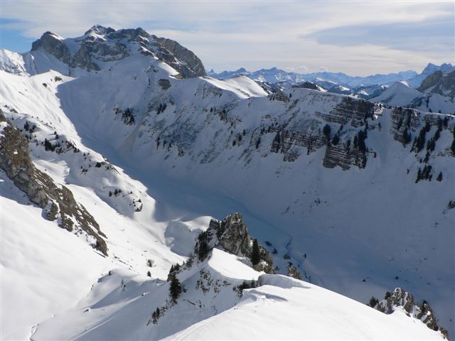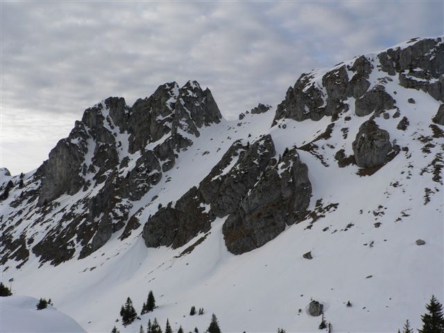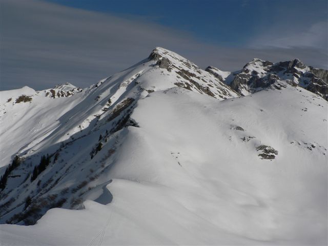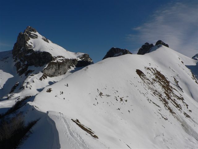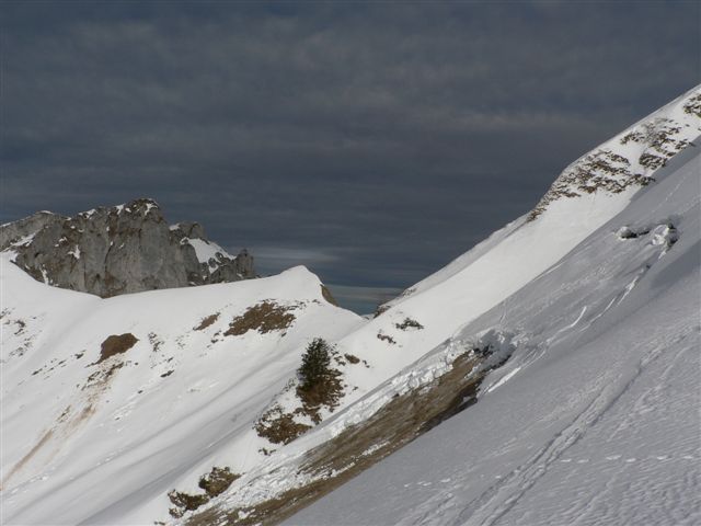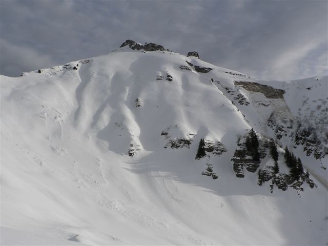Une belle plaque est partie à droite dans la face NO de Bénevent. Neige transfo au sud. Au nord, alternance de neige serrée, gelée ou petite épaisseur de poudre en surface.