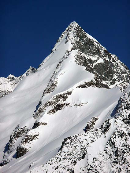 Petite balade repérage sur le versant suisse du Mont-Blanc étant donné les risques aux étages supérieurs et la mauvaise qualité de neige supposée. Je ne pensais cependant pas que ce soit si mauvais. Départ inskiable dans une croûte qui déchire la pantalon (pas de dégel à cause du vent). Grandes traversées et conversions sur 100 m. En-dessous, c'était dégelé et ça tournait bien mieux dans une neige lourde.