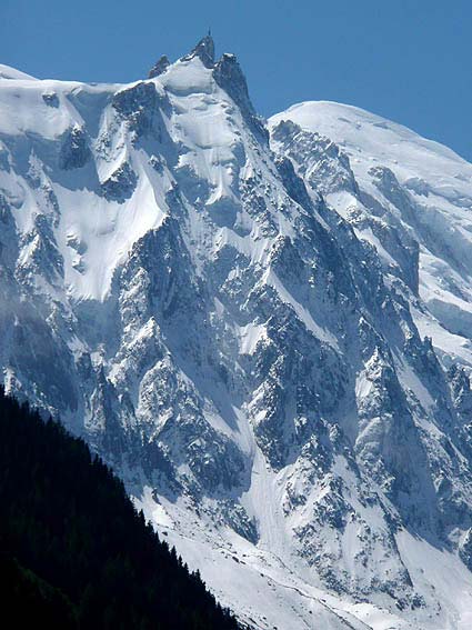 Grosse chute de neige sur le Mont-Blanc. Remontée éclair de l'iso O°C dans la nuit (de 2000 à près de 4000 m !!!). De visu, pas de poudre en-dessous de 3700 m !!! croûte de regel en surface. Nombreuses coulées humides observées en tous versants et jusqu'à 3200m environ.