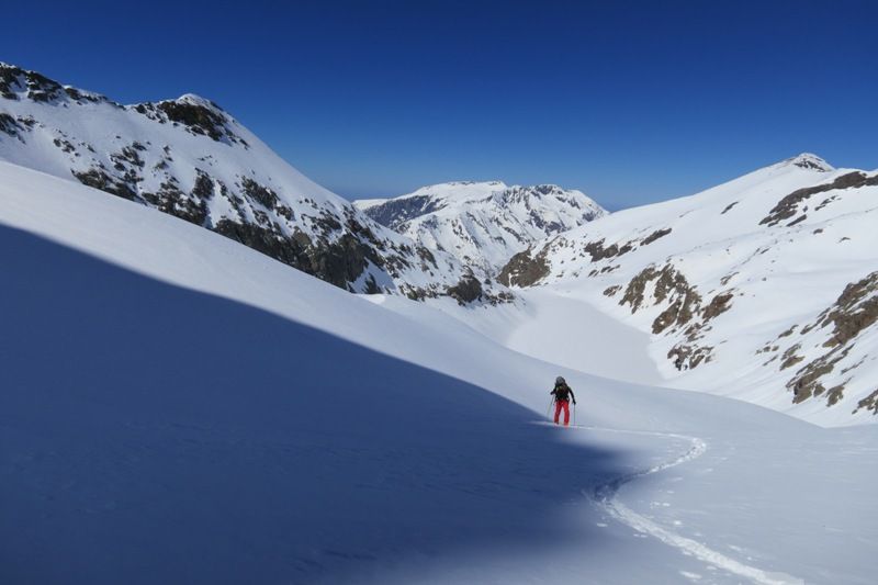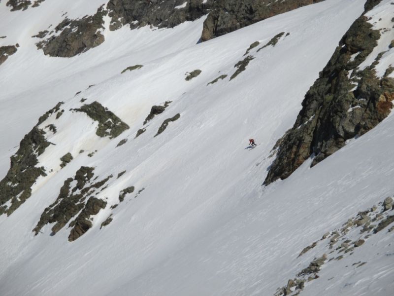Déjà dans le coin il y a quelques semaines, mais quand on aime on ne compte pas, et Daniel avec qui je n'avais pas skié depuis longtemps n'était jamais venu dans le coin. Bien bonnes conditions d'ensemble, encore quelques virages en poudre sur le haut avant de basculer en mode moquette