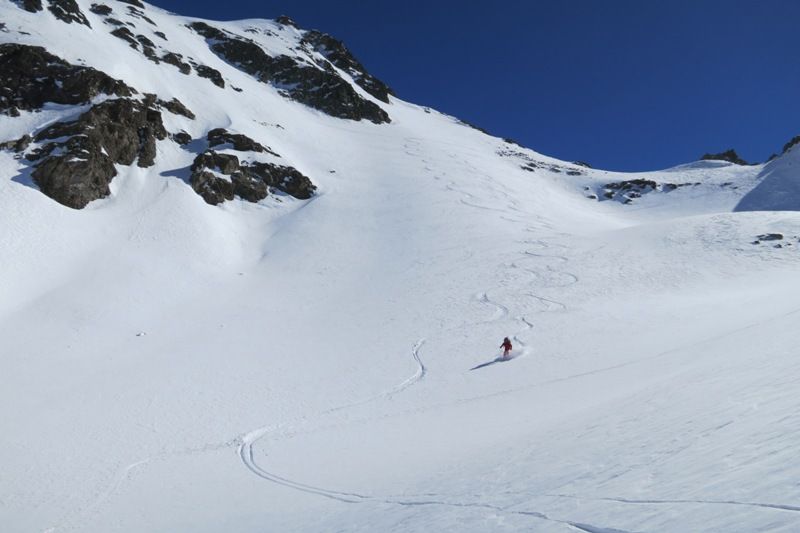 En dessus de 2000m, la transformation reste imparfaite en ouest, et on trouve de la vieille poudre encore beaucoup plus bas sur les contrepentes nord-ouest