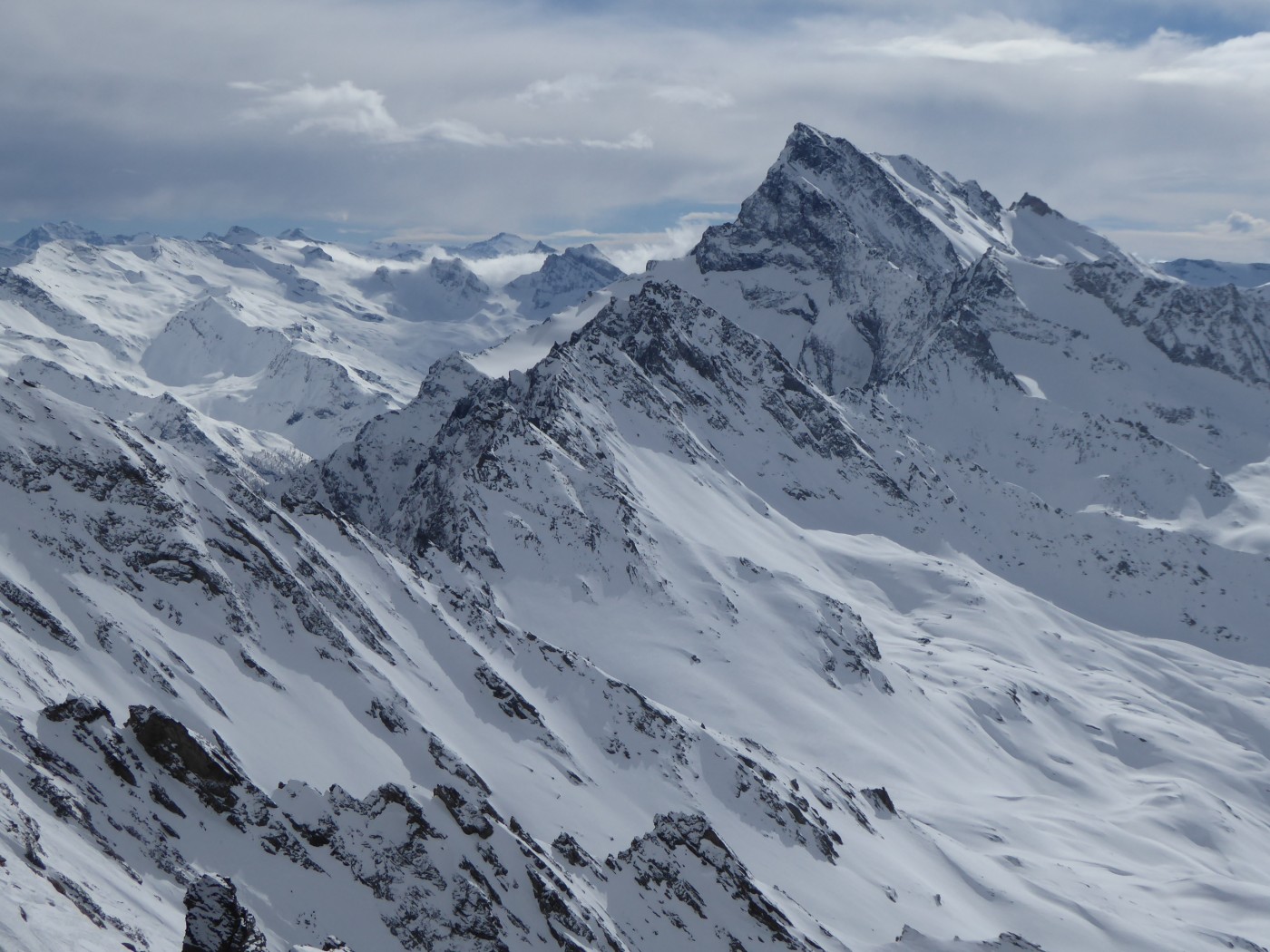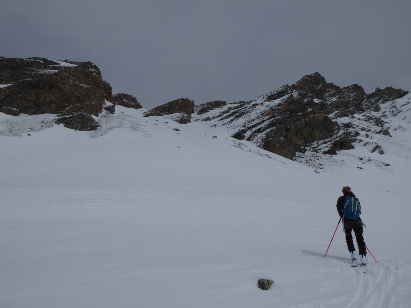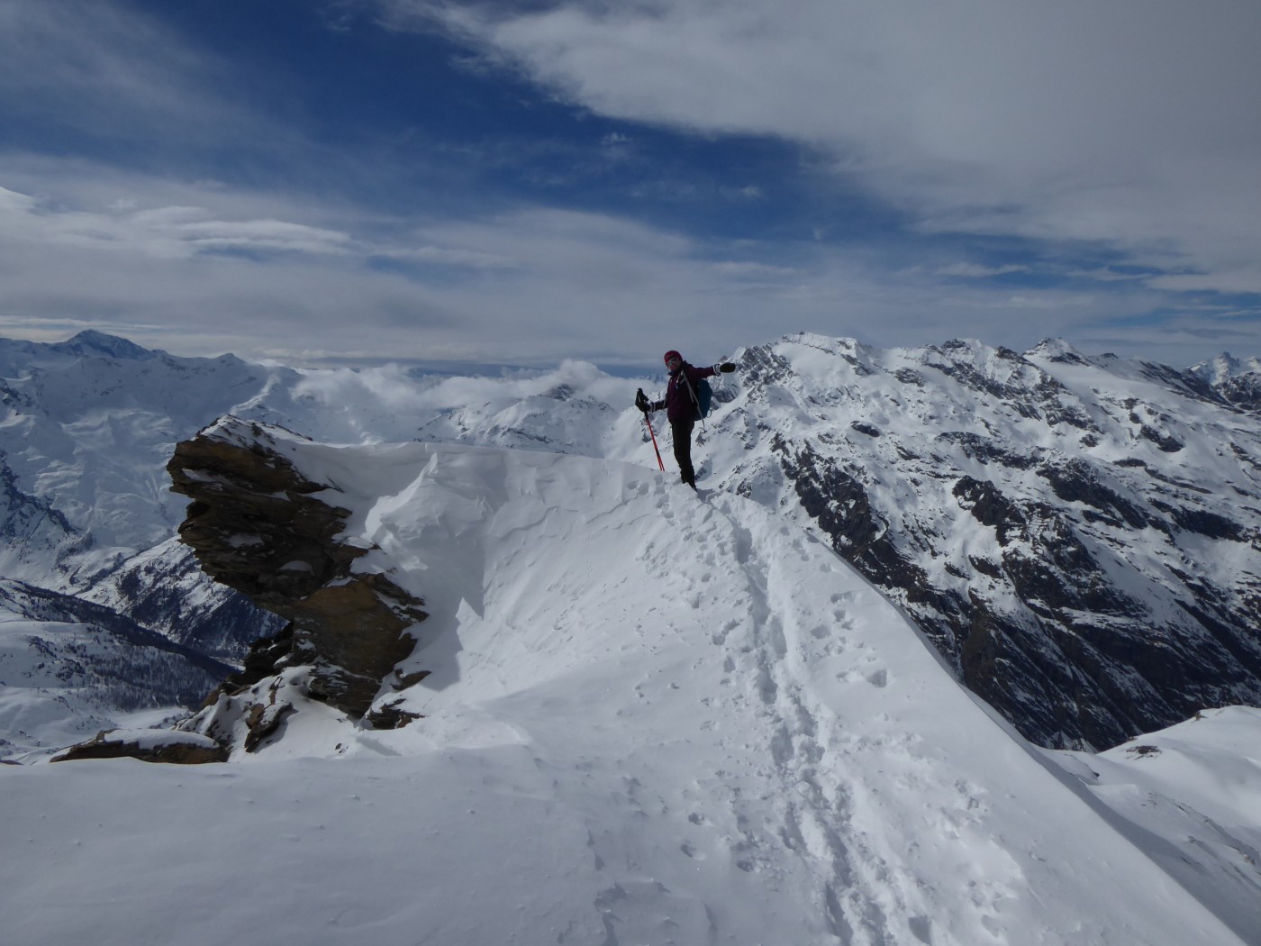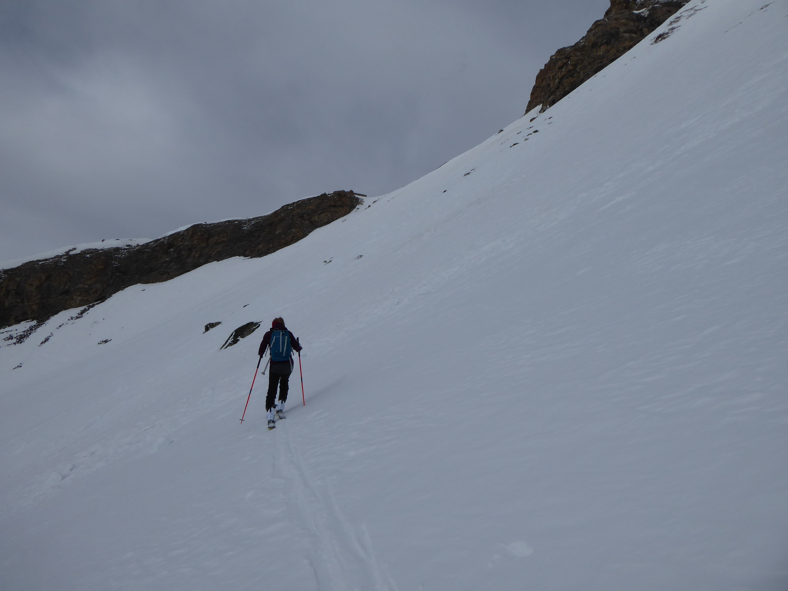 Bonnes conditions dans le couloir sud avec la petite couche de neige fraiche sur fond dur. Le retour par les pentes nord-ouest du bec des Quatre Dents est moins bon, avec une neige irrégulière. Le manteau neigeux étant peu épais dans le bas, la fin de la descente nécessite de composer avec les vernes. Secteur calme malgré les nombreuses possibilités : trois skieurs au Sigaro (B22.2), trois au col de Cussuna (B22) et deux à la pointe de Feluma (B23). Quelques déposes vers le fond de la vallée, vraissemblablement à la becca di Giasson (B18). A noter que dans le val de Rhèmes voisin, le refuge Benevolo ouvrait ce week-end.