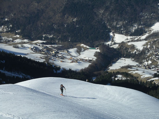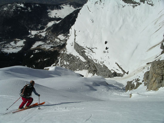 Très belle course, sauvage, belle vue sur le lac d'annecy au sommet. La face Ouest est nickel, une avalanche est partie ds l'entonnoir 1650 (boules), la forêt du bas est bien enneigée. On aurait bien continué vers le sommet de la Tournette, mais au vu de la neige en versant sud, on a préféré pas trainer.