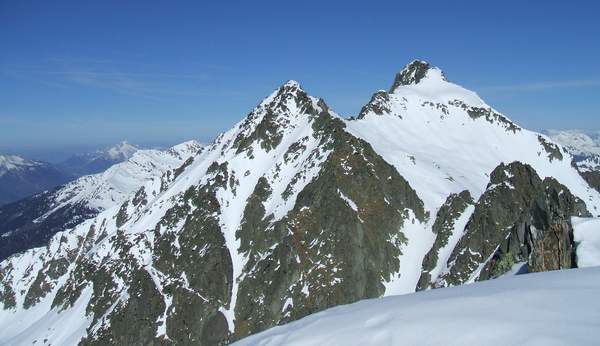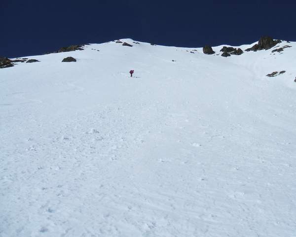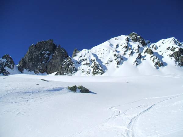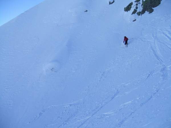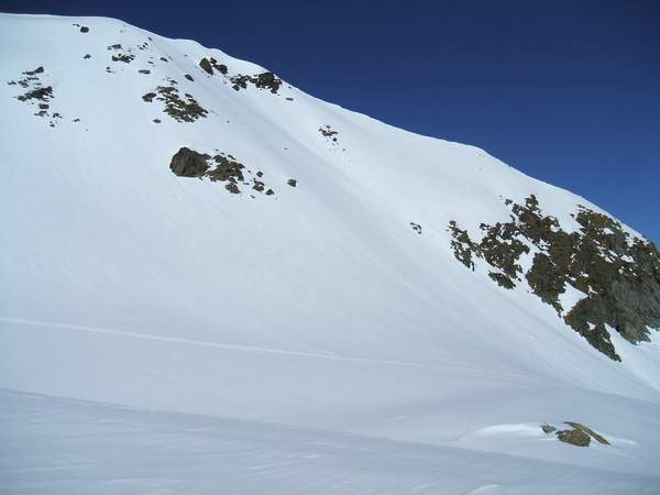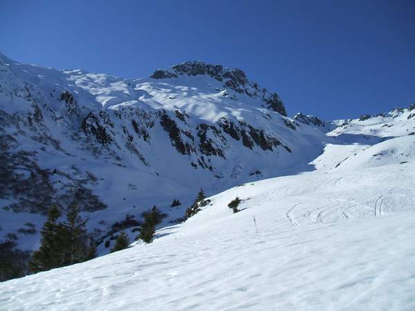H20 pour commencer et descente par le même itinéraire jusqu'à 2350. Remontée au point côté 2576 par une croupe et descente à l'aplomb du sommet par une jolie face assez raide, plus en tout cas que la première. Arrivés à 2300 , on suit la courbe de niveau pour rejoindre H18 jusqu'au sommet. Descente en face sud jusqu'à 2400 puis par H17 jusqu'à Celliers-dessus.