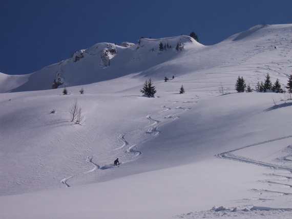 Nous avons été enthousiasmés par ce coin ci des Aravis .Le long trajet en voiture depuis Grenoble en valait la peine :qualité de neige optimale ,paysages typiquement Hauts savoyards ,vue imprenable sur le Mont Blanc depuis le sommet,descente ludique dans la poudre;çà vaut largement le détour.