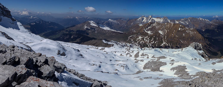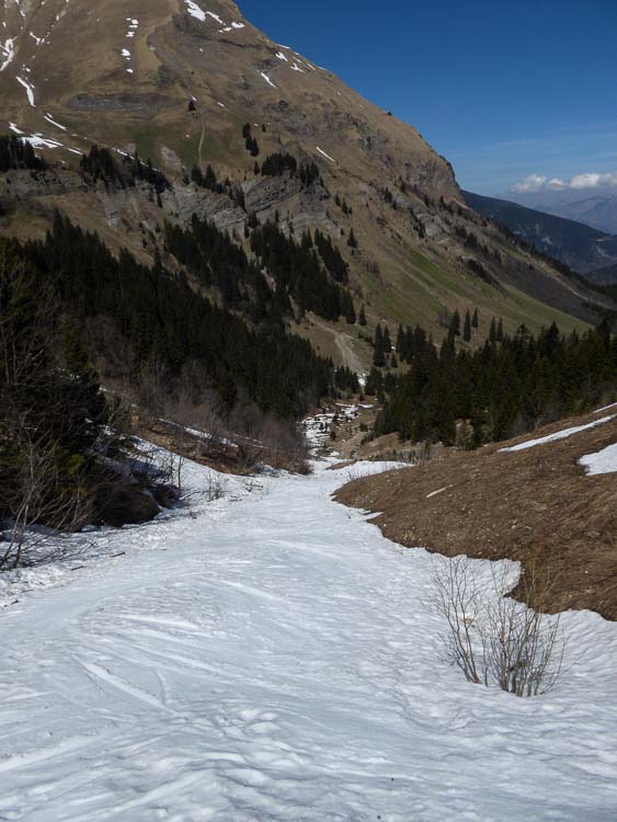 j'ai exploité au maximum la coulée sous le col de l'Oulettaz, (pas loin de 1000 m de ski d'une traite) ce qui m'a valu une remontée droit dans la forêt pour récupérer le chemin qui retourne au col des Annes