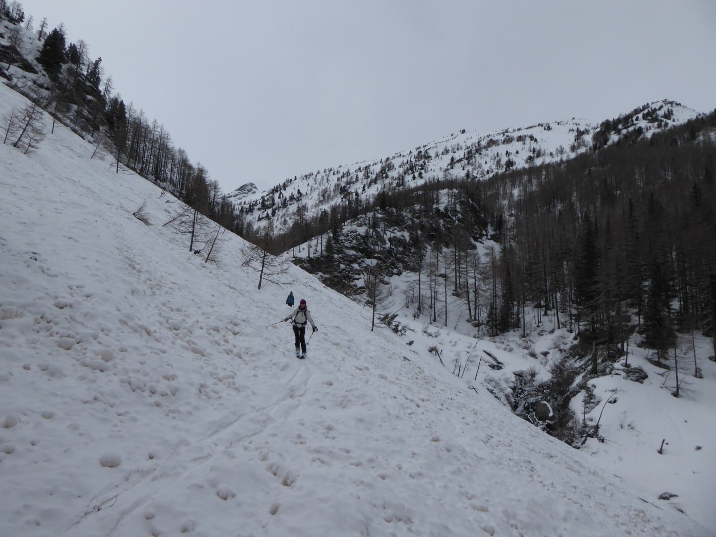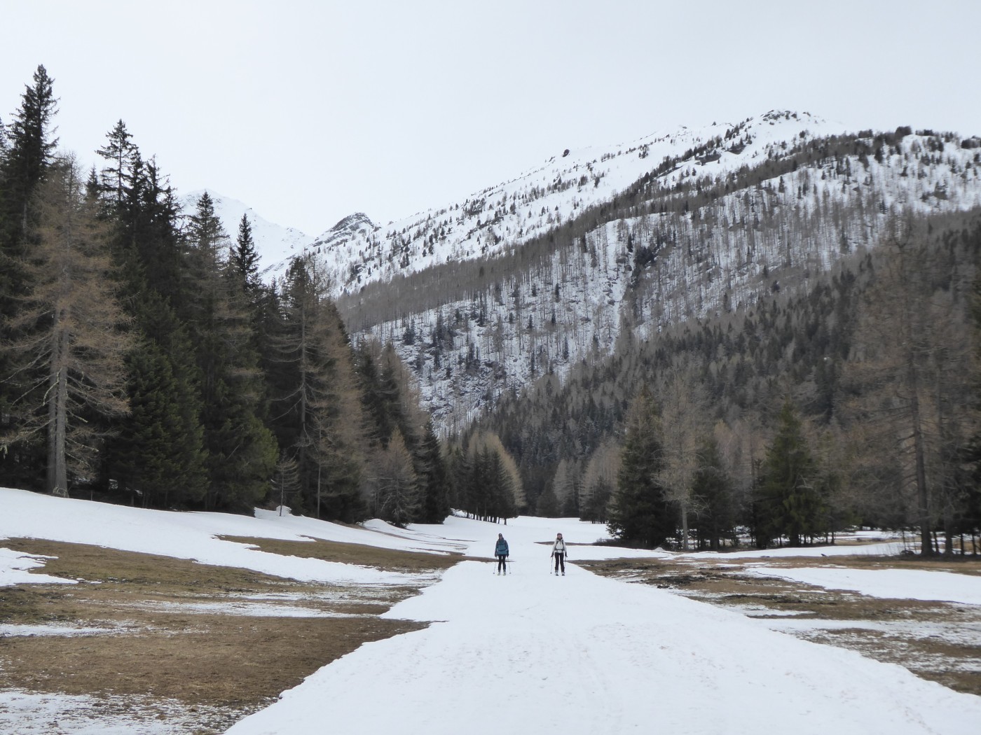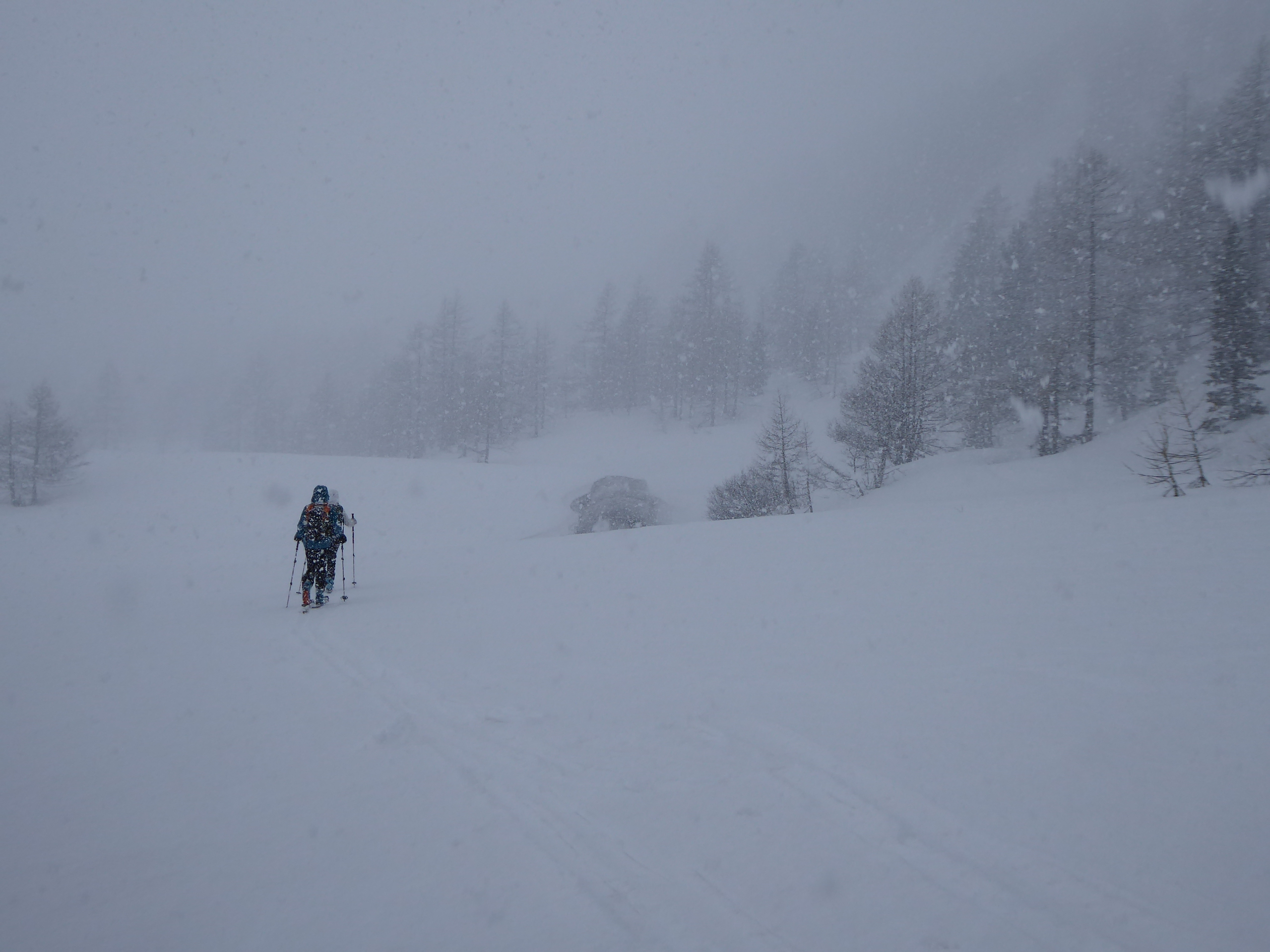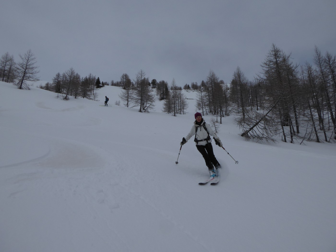 Ambiance hivernale avec l'agréable surprise de skier sur une petite couche de poudreuse jusqu'à 0.5 km d'Arpy. Quelques cailloux apparents quand même dans le bas de la descente.
