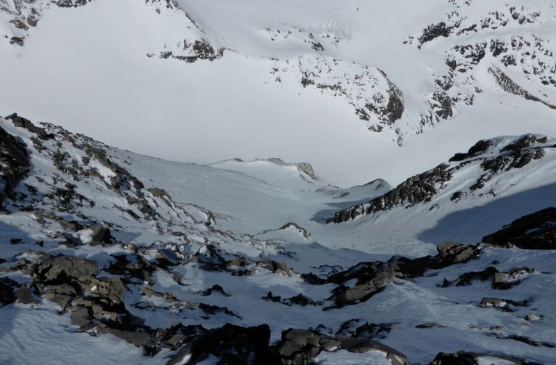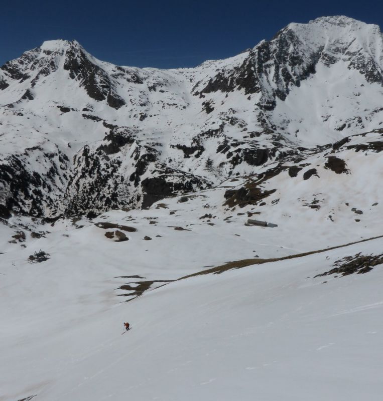 Aller/retour classique par le couloir de la Lauza. Un accès rapide et avec presque pas de portage actuellement grâce aux pistes encore enneigées.