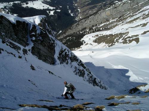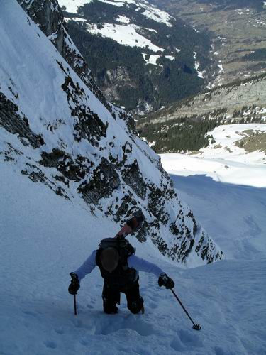 Hier, au sommet de la Bajulaz, on avait remarqué en nord de la neige poudreuse, donc on c'est dit... On a pris le couloir du milieu, car celui de gauche moins raide et celui de droite manquait de neige. Ne pas se fier à la cotation en 4.1, car même si c'est court, c'est tout de même raide et étroit, bonne couenne. La face Ouest de la Mandallaz est ravagé, le couloir Chauchefoin (Etale) est coulé, par contre la voie normale de la Tournette à l'air nickel.