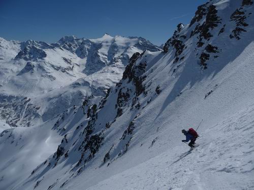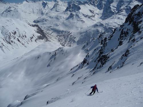 Au pied de Trétêtes, on a encore du créneau temps avant l'am familialle piste à Val Cenis et cette face m'a tapé dans l'œil en montant... donc on y va en l'attaquant par derrière. Montée paisible, descente des 400m de face avec une pente plus soutenue qu'à Trétêtes, 4.3 proposé (?). De plus une bonne neige nous a agréablement surpris pour nous combler dans cette belle descente.