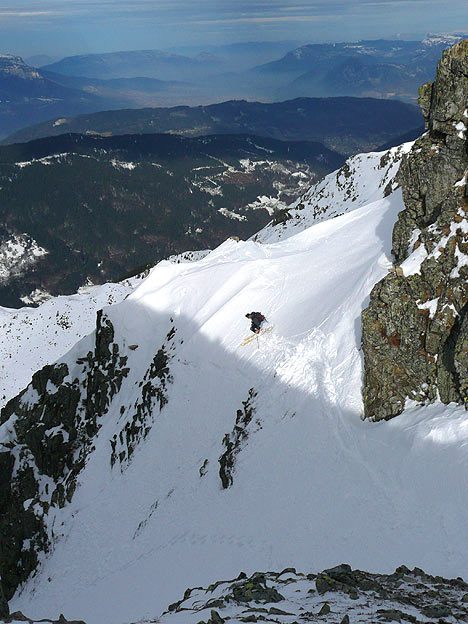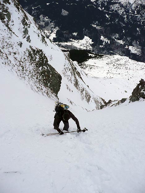 Probablement la dernière sortie de cette première cuvée de ski saison 2008 car la neige commence à fondre sous l'effet du vent de sud. On n'a pas regretté le déplacement avec du bon ski dans un petit couloir ludique étonnament bien rempli et découvert durant la montée. Belledonne est décidément inépuisable, ou presque.