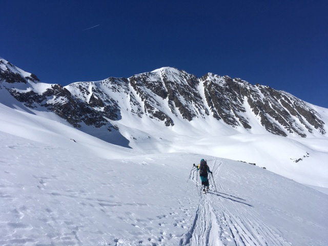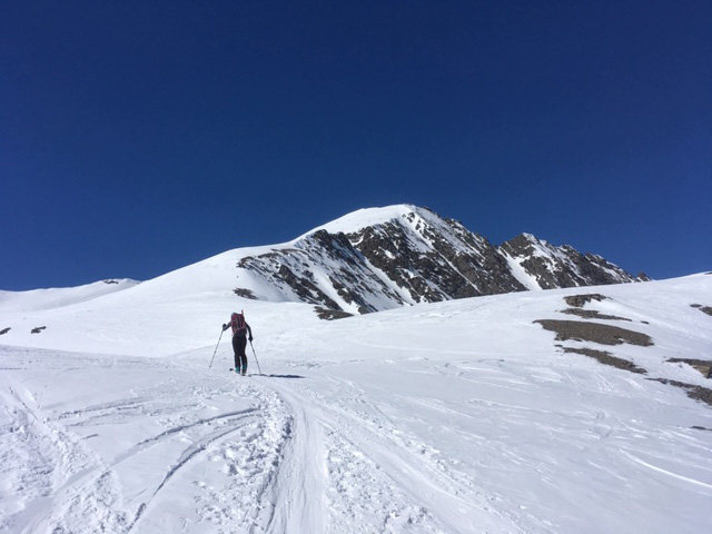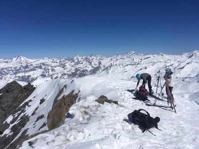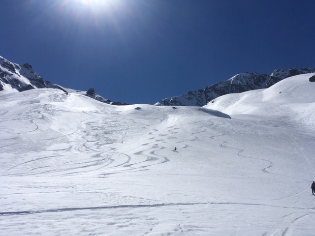 Seules au départ du refuge direction la Sana, les traces de la veille nous aident à suivre le bon itinéraire dans ce terrain plein de courbes de niveau joueuses. Arrivées à "les pissets" nous croisons quelques personnes qui montent et qui descendent. Sur la pente finale, il y a du monde en provenance du refuge de la femma (jusqu'à 20 personnes au sommet en même temps). Nous atteignons le sommet vers 12h45, la vue est dégagée (mont blanc, écrins, italie...). Le retour à la voiture se fait dans des neiges variées en jouant avec le terrain.