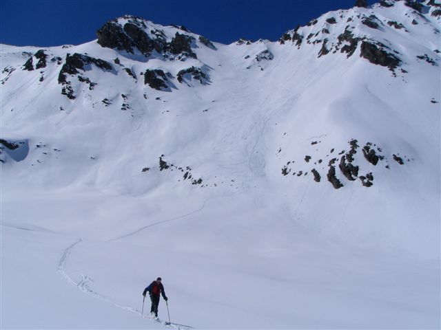 Sortie panoramique et couloir en grosse poudre. Bon ski dans l'ensemble mais versants E et NE vraiment piégeux ( N ou NO c'est tout bon ).