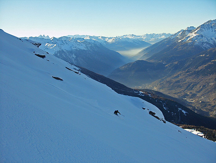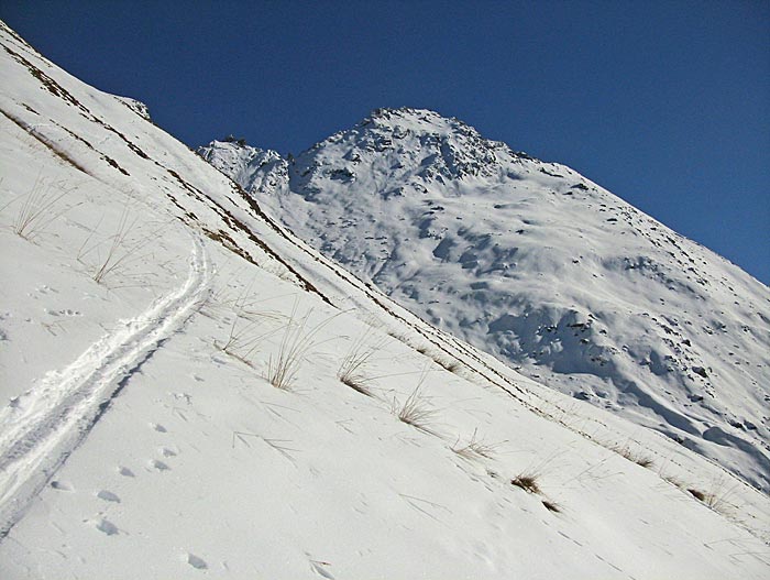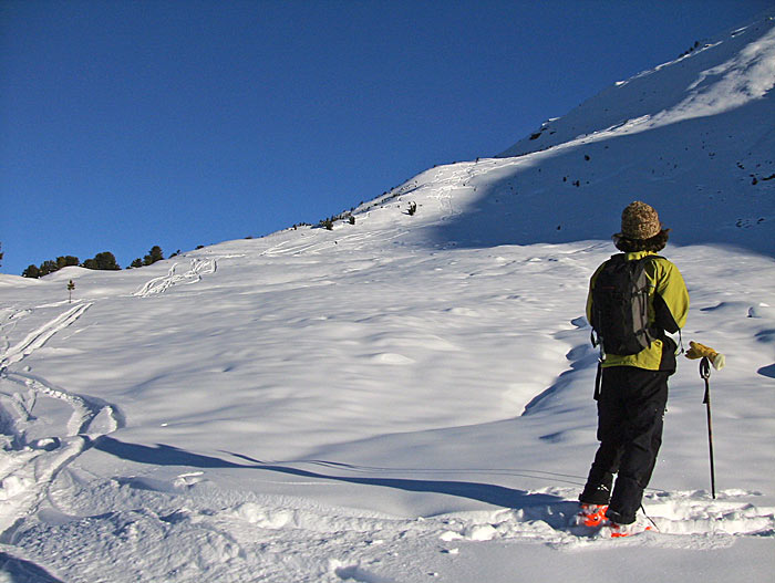 Attention dans les parties plus raides où la neige semoule descend un peu (petites purges superficielles)