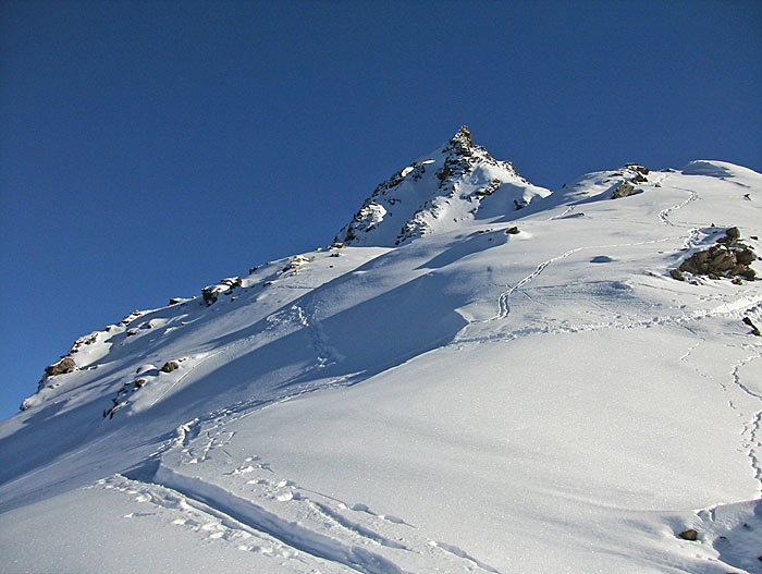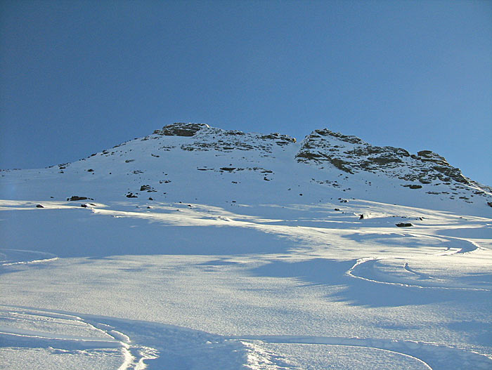 Encore une belle journée à l'Est avec un versant nord ouest bien enneigé pour ce sommet souvent venté.