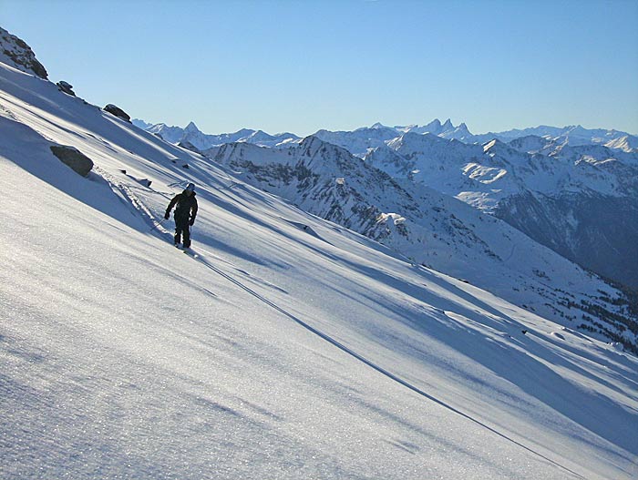 Secteur un peu moins enneigé qu'à l'Est à partir du Mont Cenis.