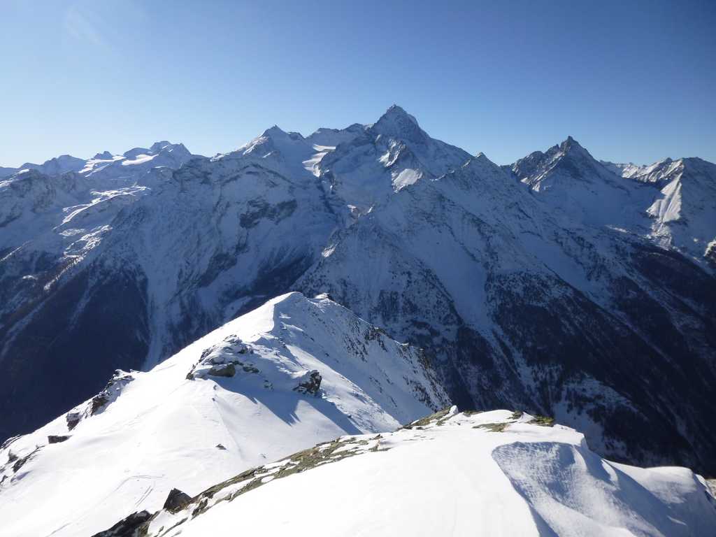 Neige poudreuse dans les combes, ventée près des crêtes avec quelques plaques bien dures.